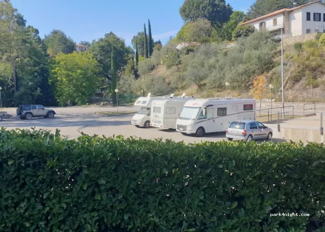 Free parking lot for any size motorhome in walking distance to Michelangelo's Birthplace. Water fountain near the stairs to refill. No other services. No shade. Restaurant Il Boschetto just next door had great reviews, but only does dinner, so we couldn't try.