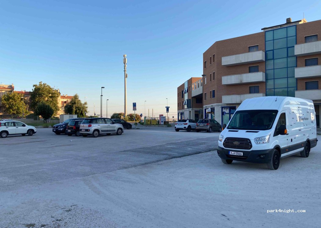 Super endroit pour un séjour d'une nuit. Calme et sûr. Les habitants l'utilisent également comme parking. Assez vide en semaine. Plage publique à 2 minutes à pied, il y a aussi plusieurs bars de plage plus bas sur la plage, quelques monuments et parcs à visiter dans la ville d'Ancône. Laveries / séchage juste à côté du parking, dispose également de laveries / séchage dédiés aux tapis pour animaux de compagnie, etc. Supermarché à côté du parking avec un bon choix de produits frais, y compris des spécialités locales. Quelques autres magasins aussi, pizzeria. Douche sur la plage.