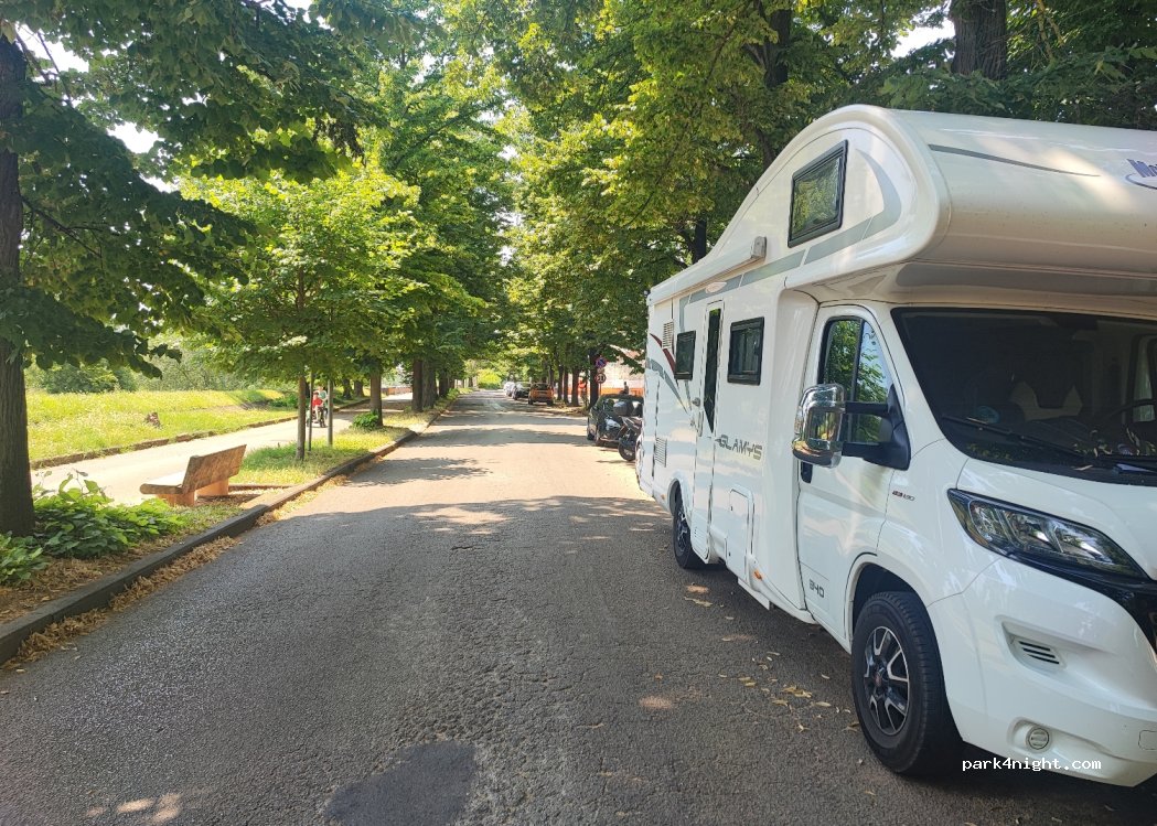Endroit calme à l'ombre le long de la route. Très agréable et calme à côté de l'Arno. On n'y passera pas la nuit. Je recherche plutôt un parking où on peut prendre tranquillement le petit-déjeuner dehors.