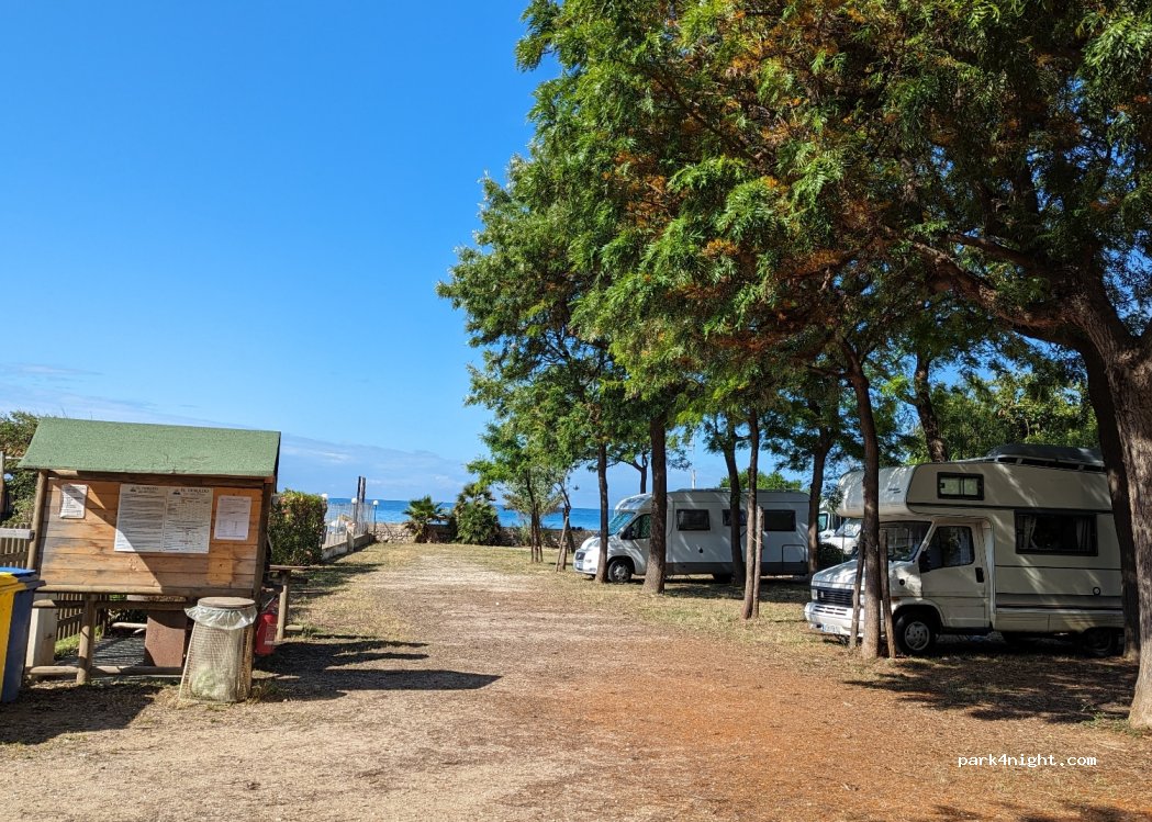 Bellissima area di sosta con discesa a mare,dispone di piazzole ombreggiate e non .barbecue,bar e stabilimento annesso con possibilità di scelta spiaggia libera proprietari molto cordiali