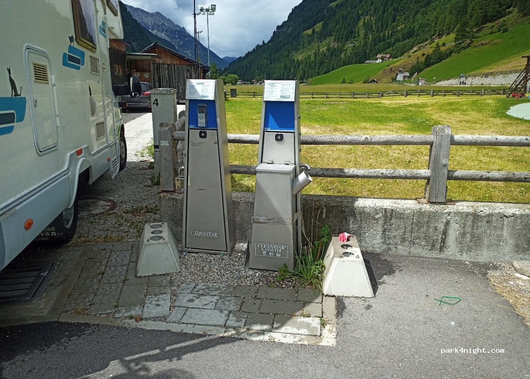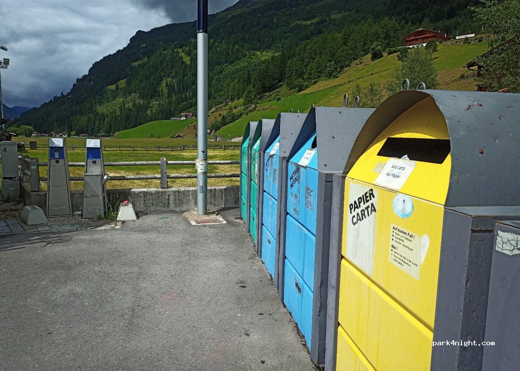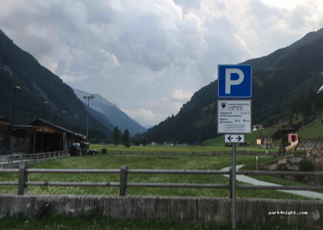 Ottimo parcheggio - silenzioso - economico dalle ore 8:30 alle ore 19 costo 5€ - con carico 30 centesimi 20 litri scarico gratuito - bus per il paese capo tures 16 km fermata nella strada principale i biglietti si possono dare direttamente nel bus - dal parcheggio camper sopra al paese possibilità di piccolo market.