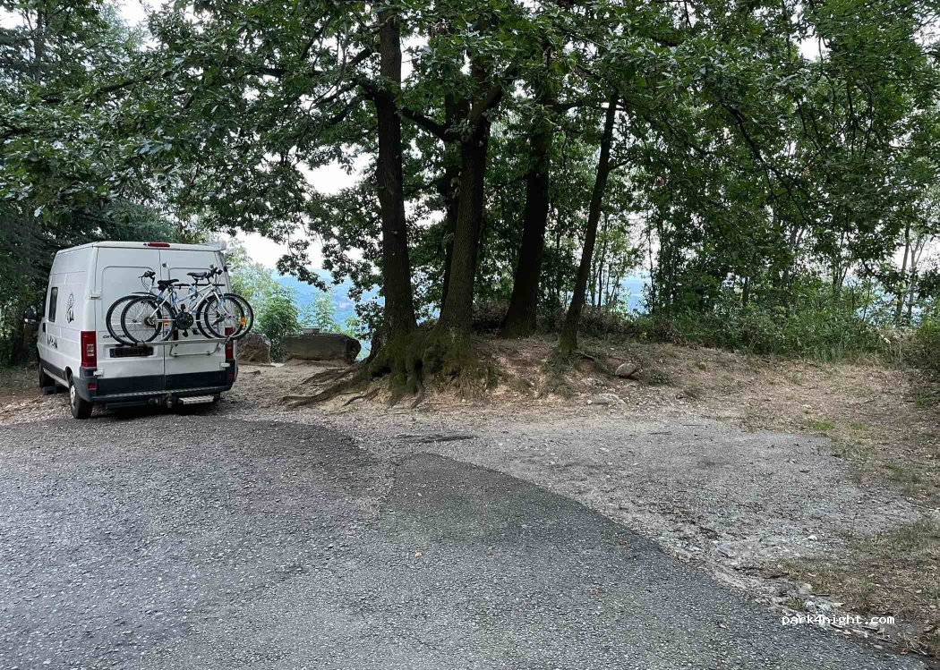Bel emplacement ombragé et calme pouvant accueillir maximum 2 petits vans. Très belle vue sur le lac Majeur et le lac de Varèse. La route qui y mène est très étroite, sinueuse et pas toujours en bon état.