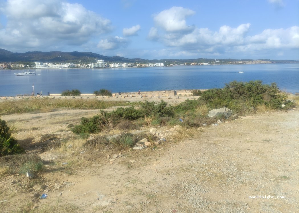 Endroit résidentiel et calme pour passer la nuit à côté de la promenade de Sant Antoni Portmany. Ce n'est pas une très grande esplanade mais elle peut accueillir environ 3 ou 4 campeurs. Le terrain plat, en bord de mer, n'interdit pas les nuitées. Nous avons passé la nuit ici avec un autre campeur et bien.