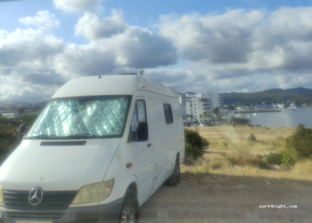 Residential and quiet place to spend the night next to the Sant Antoni Portmany promenade. It is not a very large esplanade but it can fit about 3 or 4 campers. Flat site, next to the sea, does not prohibit overnight stays. We have spent the night here with another Camper and well.