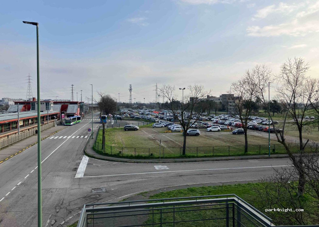 El mejor parking para visitar Milán. Es un parking para coches, pero admite autocaravanas. Hay un controlador de 7:00 a 20:00 (por la noche no) Precio todo el día 2€ (si, autocaravanas también). Por la noche el parking permanece abierto. Justo frente la estación de metro de Cologno Nord. Por 2.20€ vas a Milán centro. Y lo mejor de todo, NO ME ROBARON ni nada parecido. Yo no me quedé a pernoctar