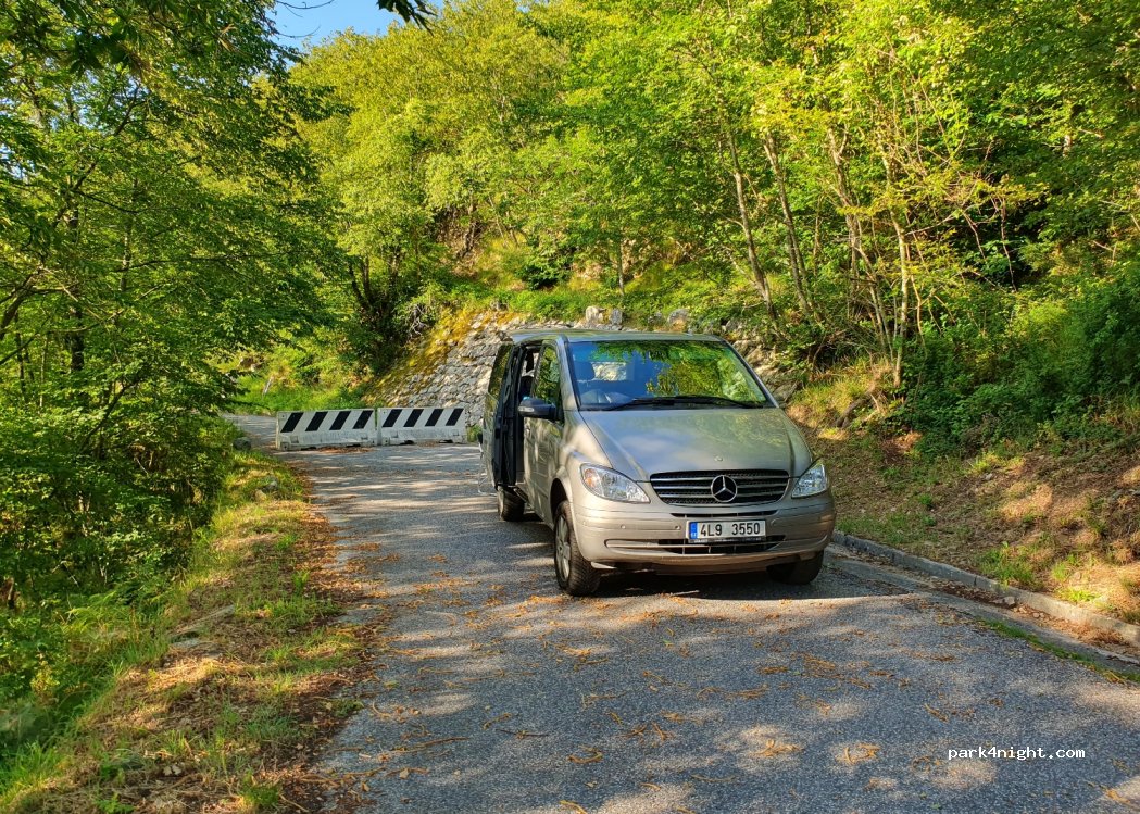Place de parking au carrefour. Vous pouvez dormir près du bâtiment graffiti. Assez calme, bel endroit pour des randonnées. Peu de motards peuvent vous dépasser mais nous n'avons eu aucun problème. Gardez-le propre et profitez-en :]