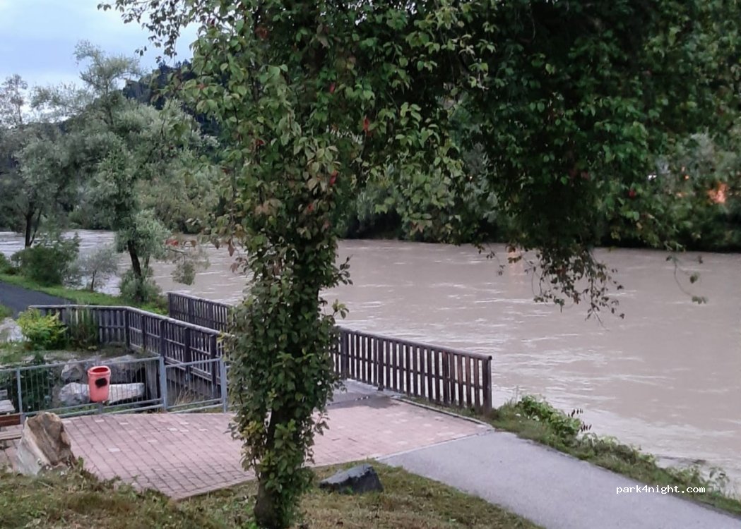 Eigentlich sind es zwei parkplätze, einer oben und ein größerer (beton) unten. Direkt neben einem sportplatz. Ich habe oben geparkt, da unten gerade eine veranstaltung war. Camping ausdrücklich verboten! (Siehe verbotsschild auf dem ersten foto). Weiter unten am fluß gibt es eine trinkwasserquelle und eine bank-also der perfekte picknick spot. Gegenüber vom fluß ist ein bahnhof, man hört aber nur wenig.——————————————