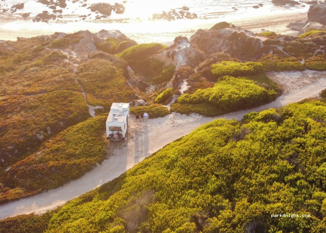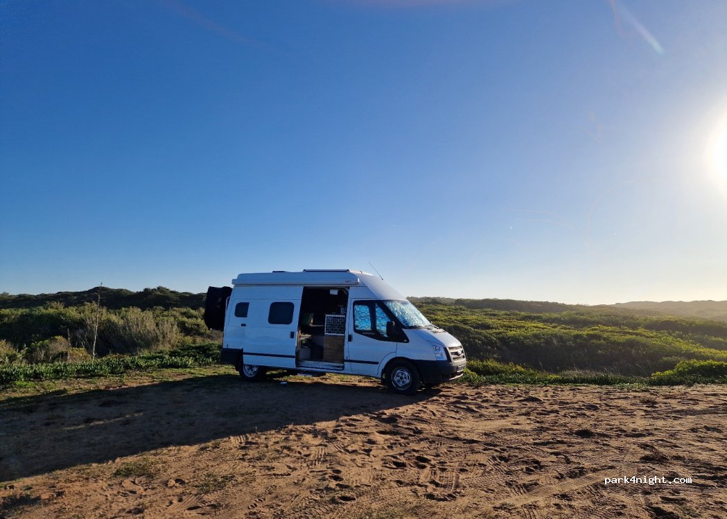 Super spot très isolé avec une belle vue sur mer. Pas de panneau d interdiction et on a vu personne. Effectivement le chemin est très sablonneux, nous avons dû aider un gros camping car qui s’était enlisé à repartir. Ça passe van et si vous savez conduire dans le sable, pas avec un gros gabarit. Sinon c est l enlisement assuré avec peu d endroits pour faire demi-tour.