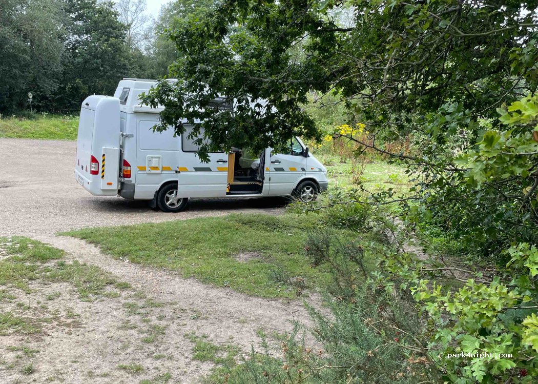 A little gravel car park next to the pond...with very vocal ducks and other animal noises through the night! Traffic was surprisingly busy until late evening and again early morning. Occasional car pulled in for a few minutes in the evening and early morning dog walkers. It was fine for a night!