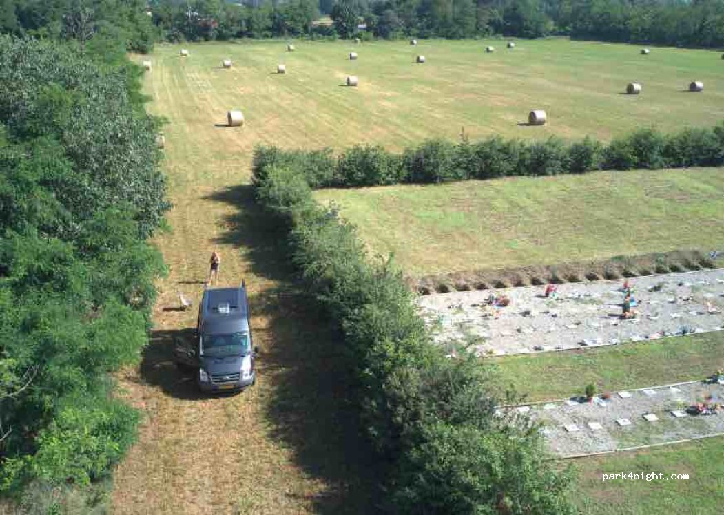 Next to a parking lot of an animal cemetery. Allowed to park during the day.