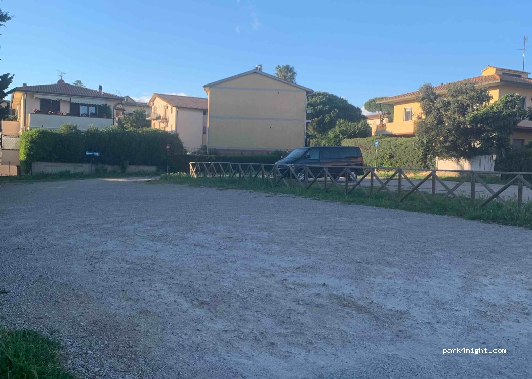 Parcheggio in terra battuta, tranquillo, sicuro e gratuito. Non ci sono servizi, ne acqua. Ma posizionato praticamente in paese.