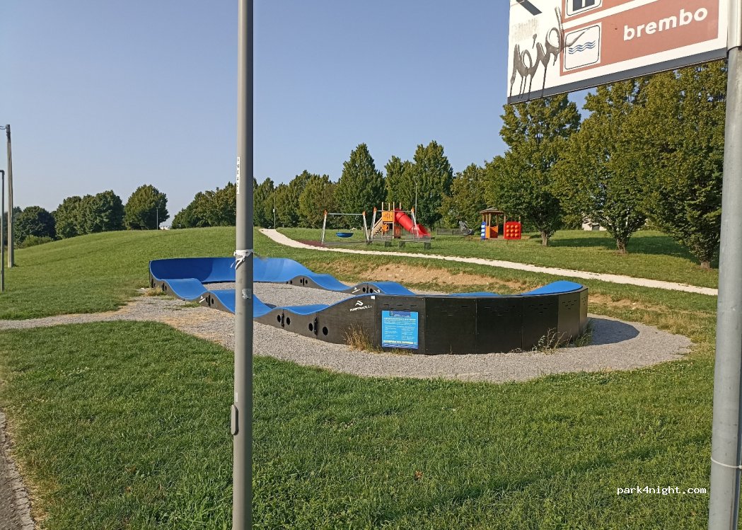 C'è un parco giochi accanto al parcheggio.