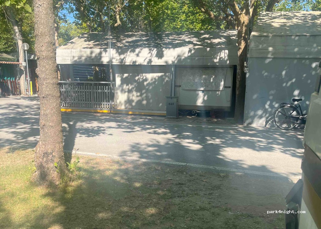 Parcheggio camper molto ben tenuto da gestori molto cordiali. Offrono numerosi servizi, un bar, un'area giochi per bambini e un'area fitness. A circa 700 metri dalla spiaggia libera