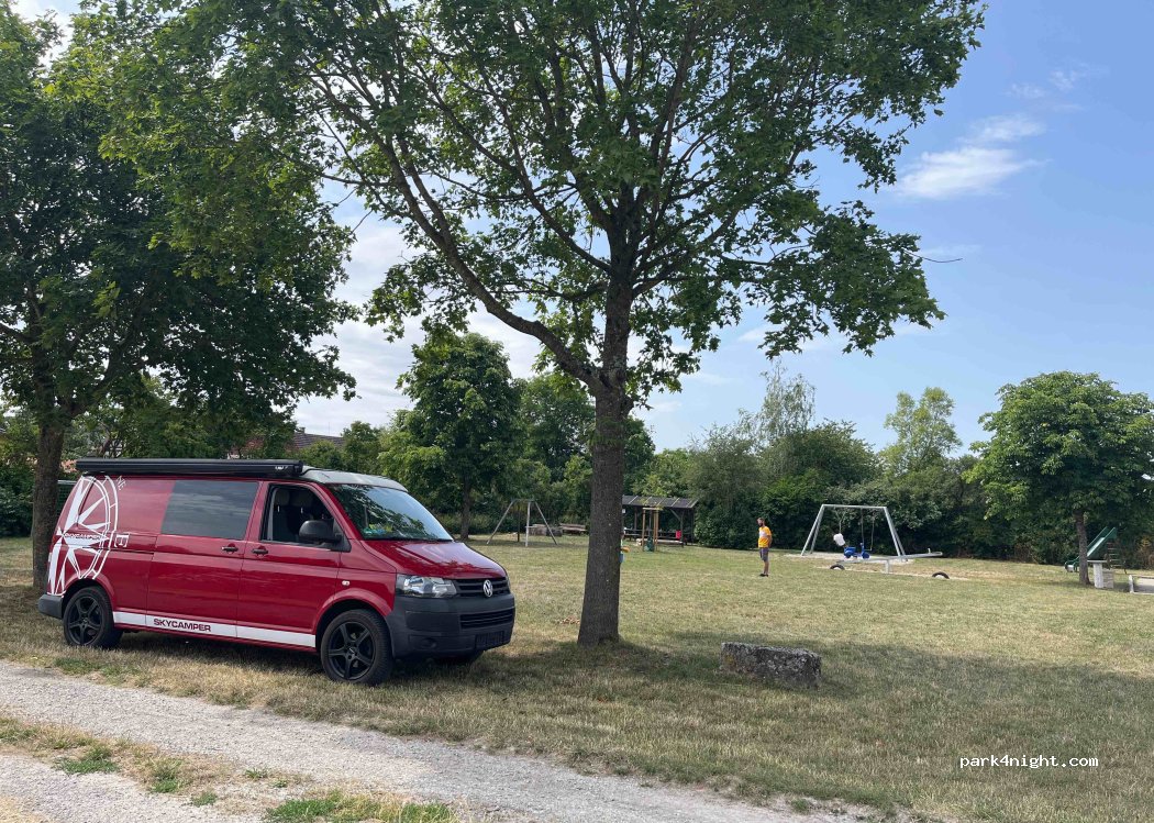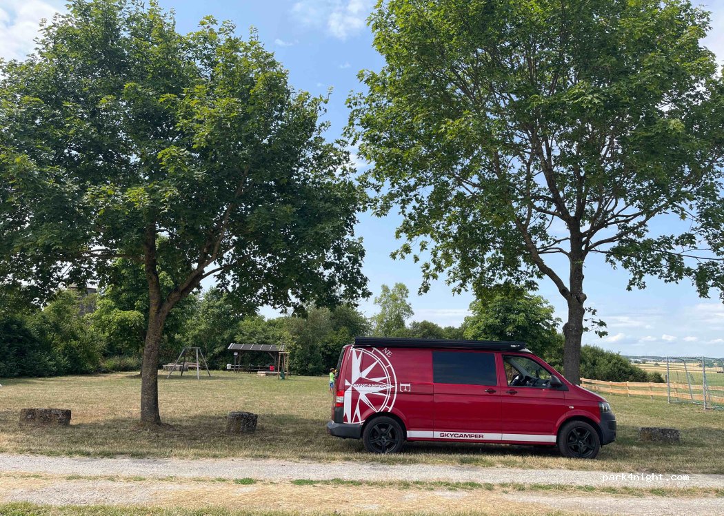 Nur ein Wiesenstreifen neben dem Spielplatz. Nichts für größere Wohnmobile.