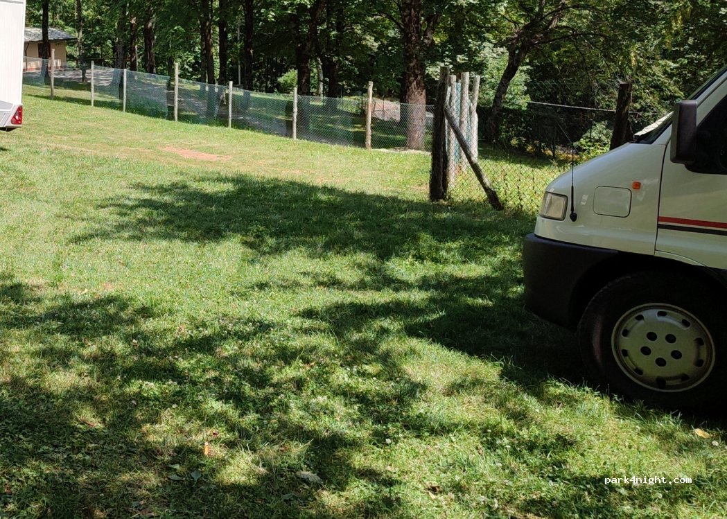 Ampio parcheggio condiviso con le auto su erba in piano, non tiriamo fuori i tavolini occupando il posto x un' auto altrimenti mettono il divieto a noi camperisti.