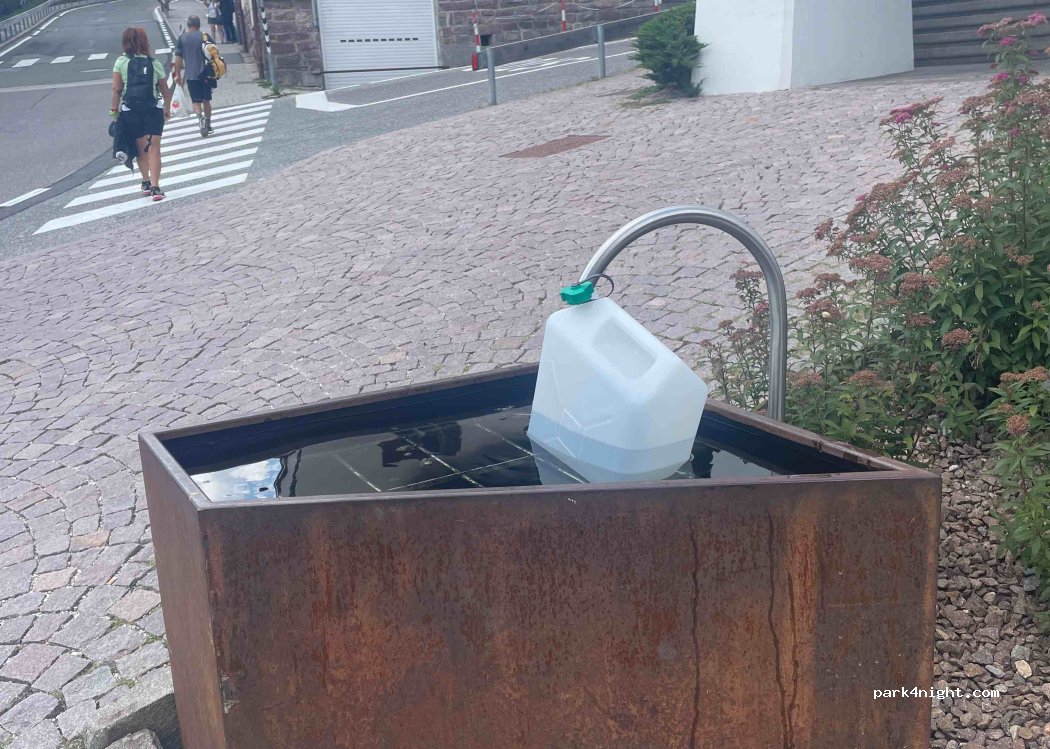 on peut se garer juste à côté le temps de faire le plein , il y a un faible débit mais ça fait l affaire pour remplir le van.