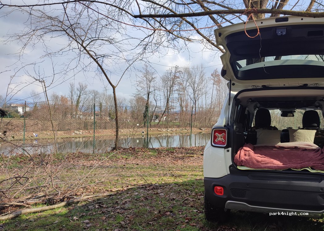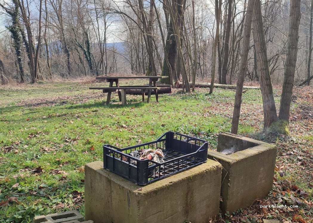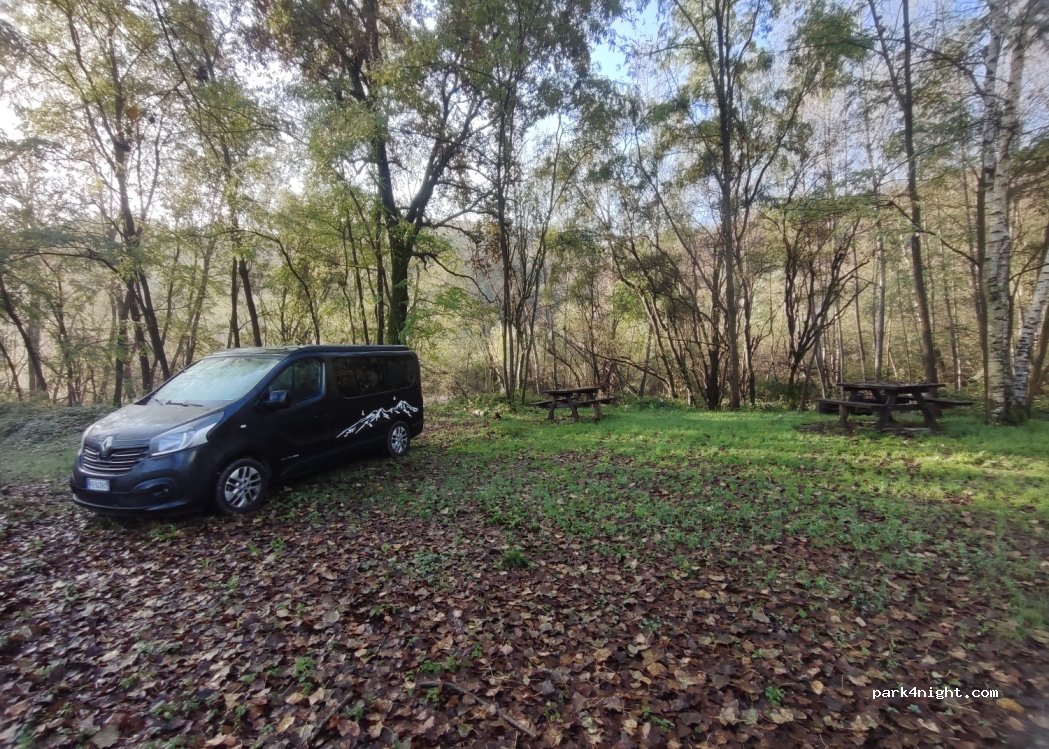 Posto molto bello con tavoli e ombra. Fiume a 2 passi. Il posto sarebbe privato, il custode passa ogni tanto, simpatico e cordiale ci ha invitato a rimanere quanto vogliamo. Bar del laghetto da pesca a fianco aperto sabato e domenica. In settimana sempre tranquillo e silenzioso. Tenere pulito!!!