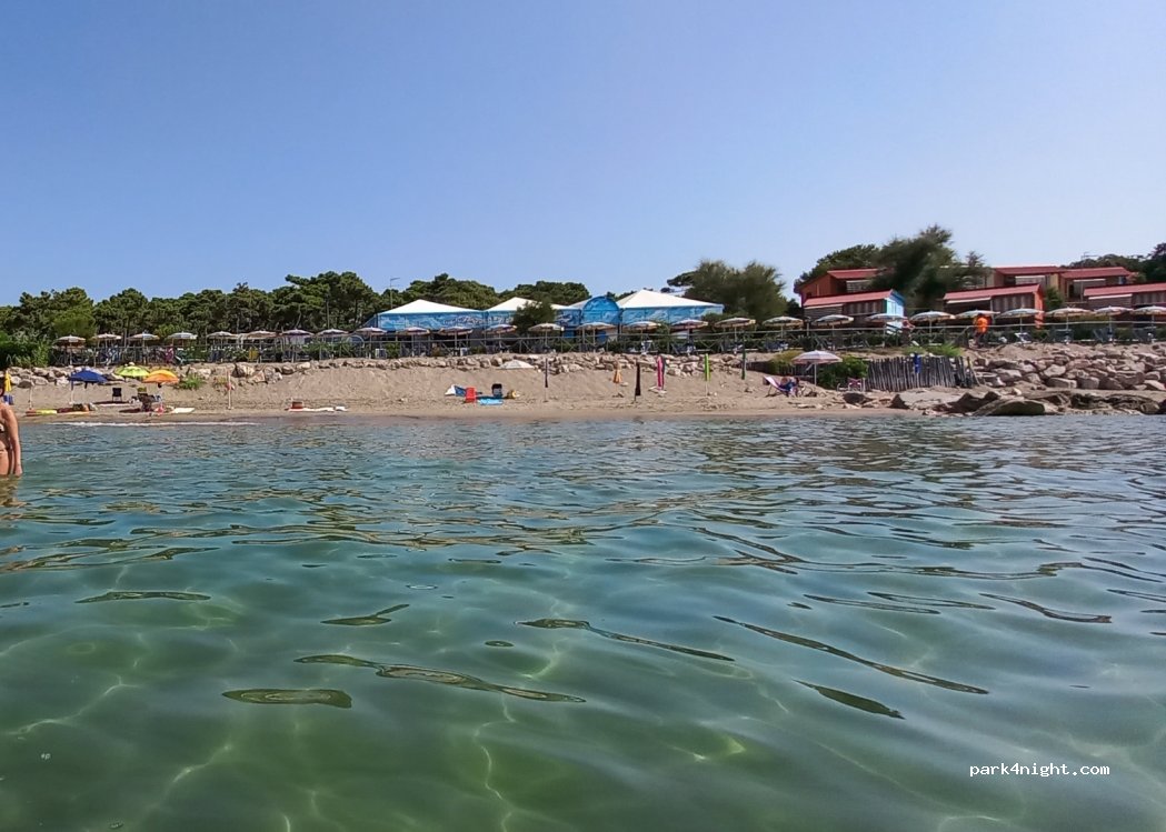 Bel campeggio ma caro. A metà settembre in 4 abbiamo pagato 41€ e le piazzole sono tutte sulla sabbia. Per uscire siamo rimasti impantanati, ci hanno dovuto trainare con il trattore. All’interno c’è un buon parco per i bimbi e una piscina che sono fantastici ma a pagamento. Compensa la spiaggia inesistente. In sintesi non ci torneremo.