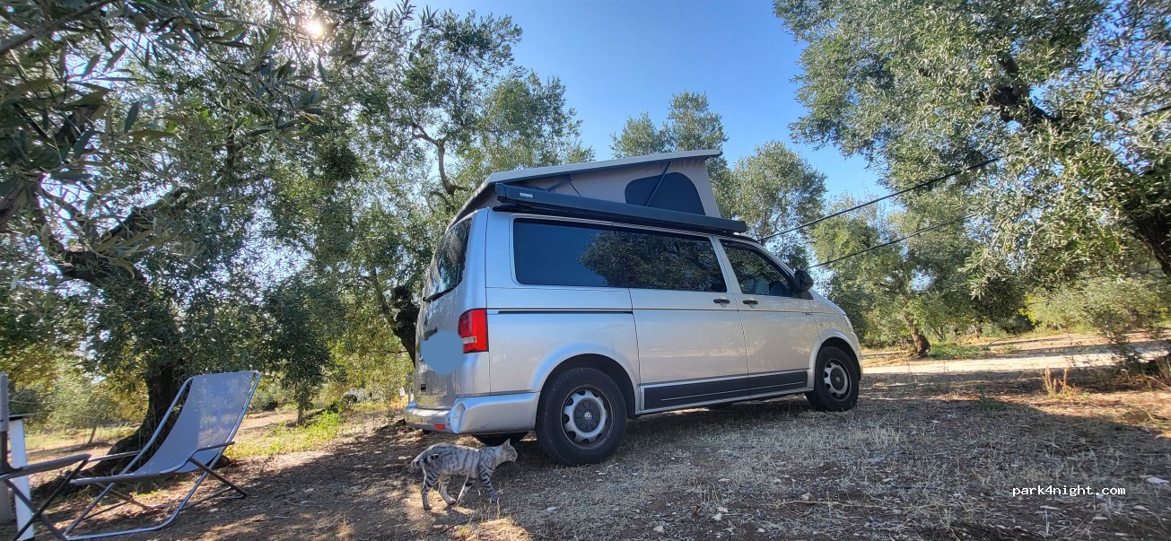 Es ist ein sehr schöner Platz inmitten von Olivenbäumen. Die Besitzer sind sehr nett und aufmerksam. Der Ort ist sicher und ein perfekter Stopp für die Nacht bevor man die Fähre in Bari nimmt. Wir haben uns sehr wohl gefühlt und der Preis ist super! Vielen Dank für diese Gastfreundschaft und Hilfe! PS: Süße Katzen kommen zu Besuch.