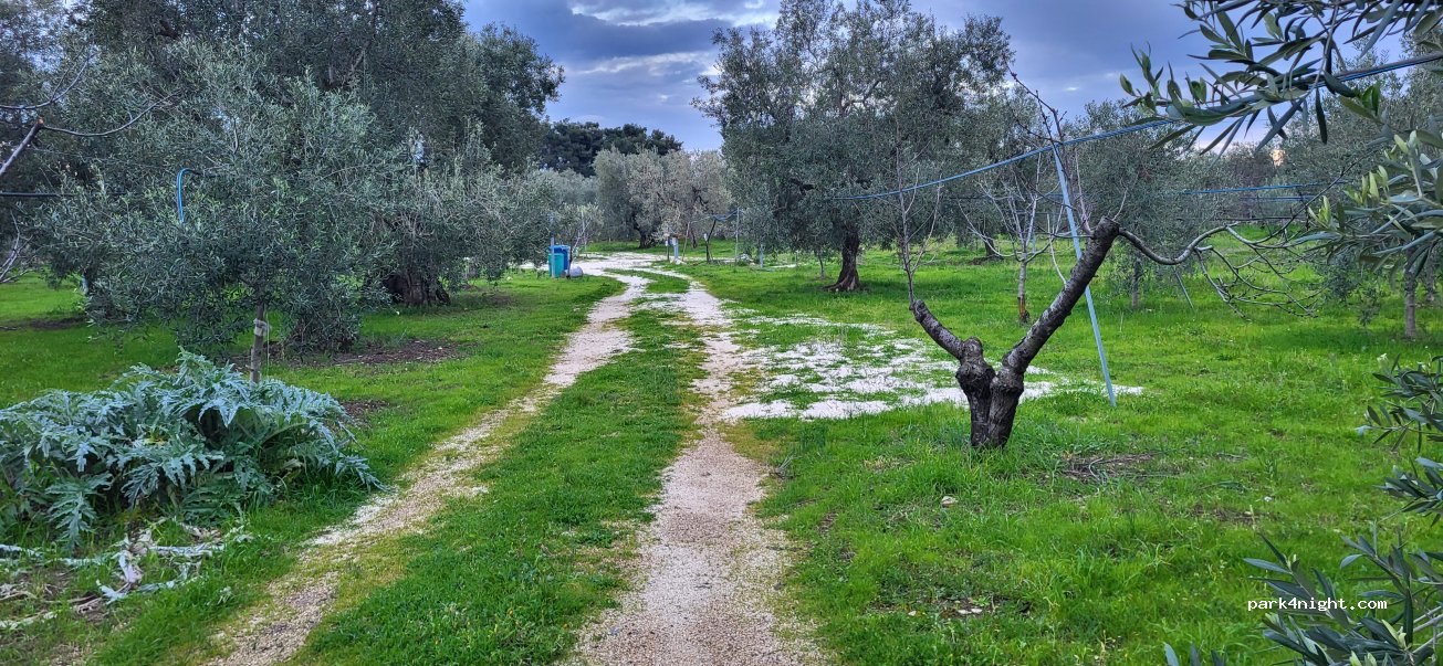 Super miejsce w gaju oliwnym. Toaleta i prysznic nowiutkie, ładne, zadbane i czyste. Miejsce nieduże, przez co bardzo kameralne i widać, że stworzone przez ludzi z pasją i podróżniczym doświadczeniem, bo niczego nie brakuje. Gospodarz bardzo uśmiechnięty i chętny do pomocy, widać że cieszą go goście. Noc cicha i spokojna,piękne widać gwiazdy,ale wieczorem uwaga na komary - gospodarz nas ostrzegał.