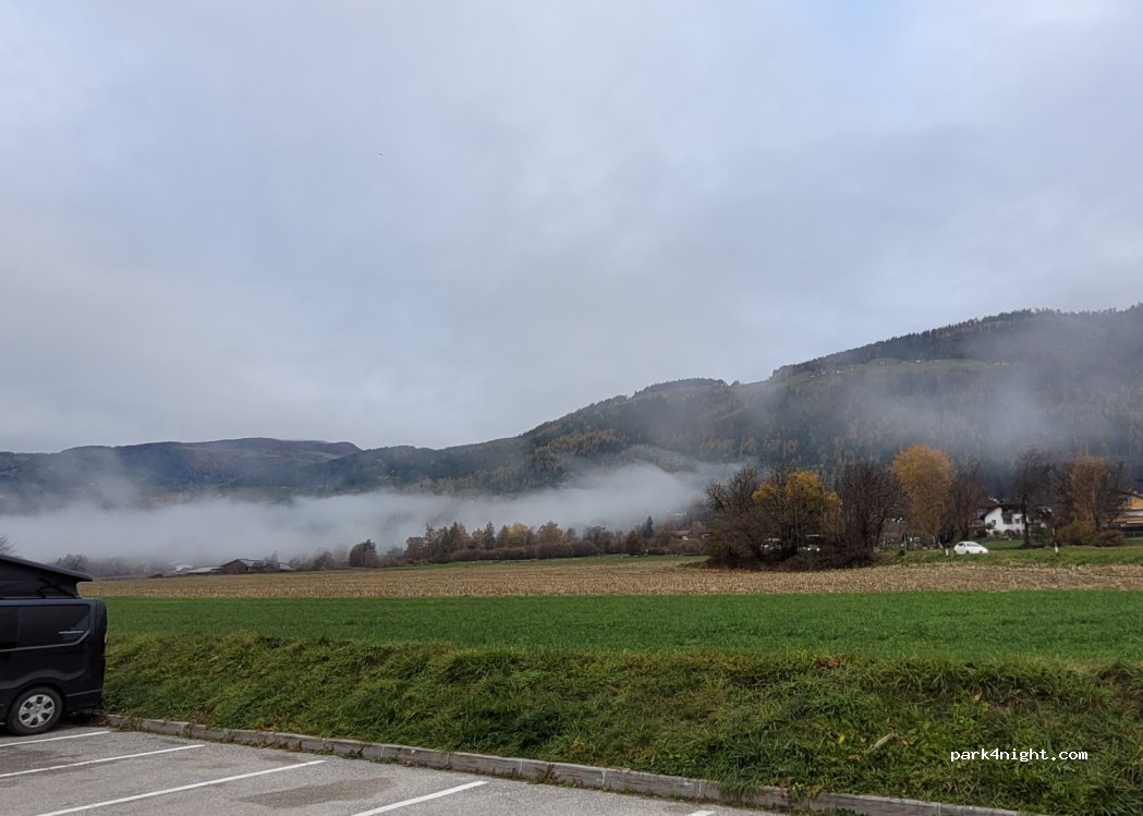Bon parking pour une nuit, un peu à l écart de la route. Calme la nuit mais déjà du passage sur la route dès 6h / 6h30. Bon compromis, car pas grand chose d autre dans les environs.