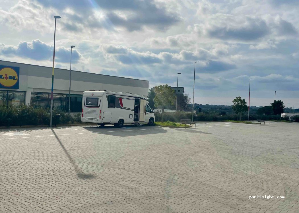Super et merci à LIDL , nous y avons passé la journée de hier et dormi cette nuit .C'est le premier parking que l'on voit , où, les emplacements sont à part du parking voitures ( par rapport aux Lidl au Portugal) !!!plusieurs poubelles, laverie à 3 min à pied ( prévoir monnaie )