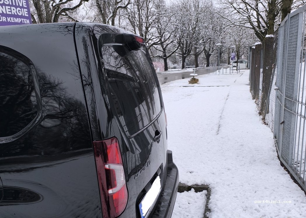 Wir haben 16h in Kempten auf dem Seitenstreifen vor dem Curlingfeld geparkt. Es waren zwar noch 2 Stellplätze hinter der Hecke frei, aber zu hell beleuchtet und das Licht stört beim Aufstelldach. Auch ist die Fläche dort nicht gerade und wir hatten keine Auffahrkeile dabei. Kosten 9-19 Uhr 4 €, nachts kostenfrei. Große Glas-, Papier- und Verpackungscontainer vor Ort