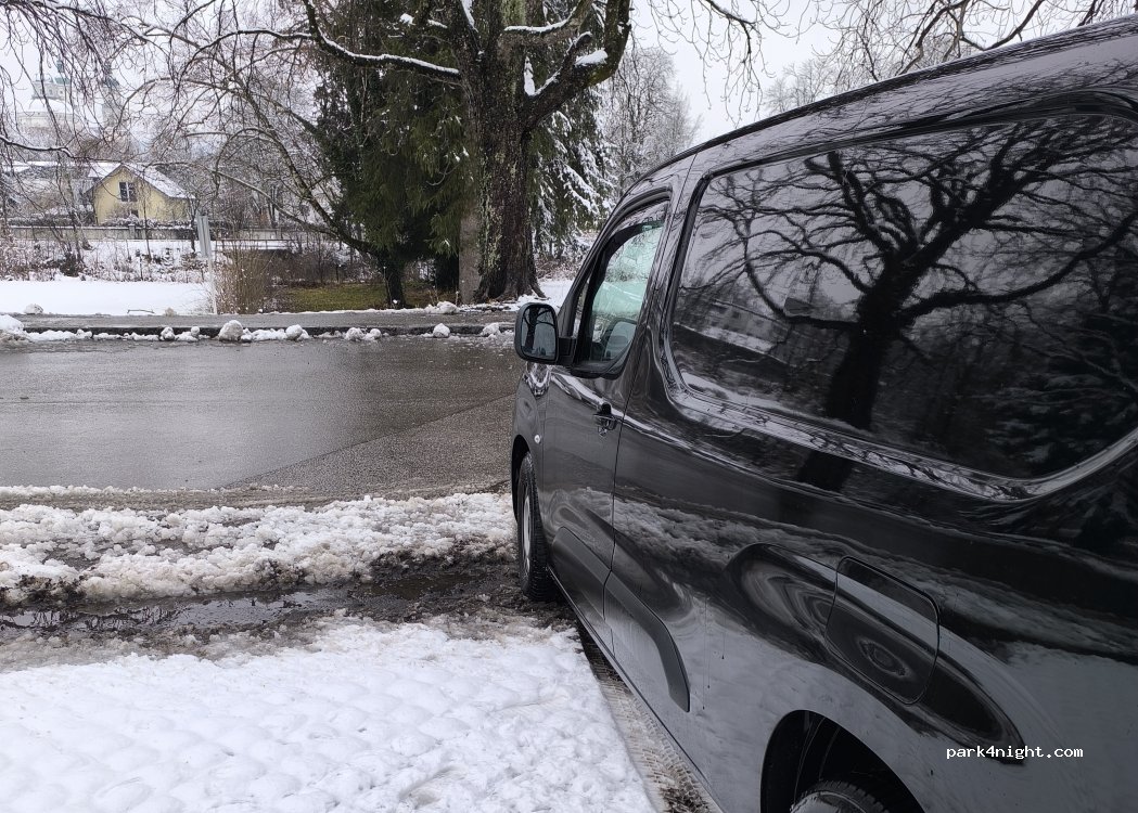 Geparkt wird am Straßenrand. Das ist für eine Nacht ok, weil die Straße sehr ruhig ist. Im Sommer sind natürlich einige Menschen auf dem Gehweg unterwegs. Für die Durchreise ist der Straßenrand aber gut geeignet. PS: von 19-9 Uhr gebührenfrei .