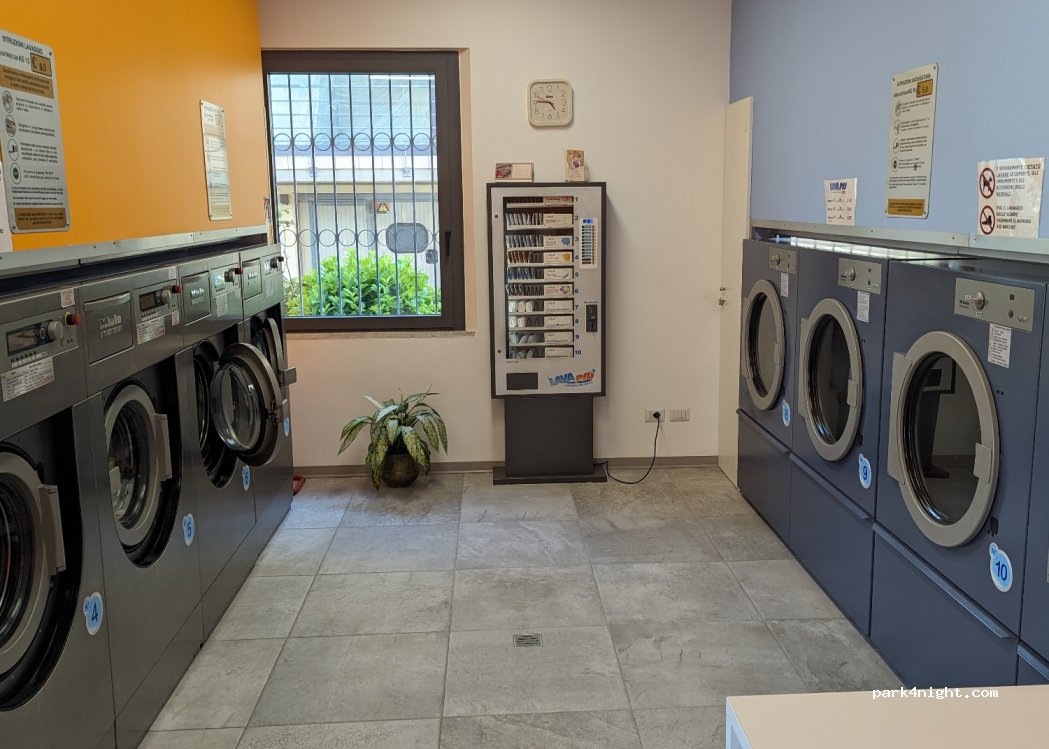 Der Selbstbedienungswaschsalon „LAVA PIU“ ist von 7:30 bis 22:00 Uhr geöffnet. Mehrere Maschinen, 7 kg, 13 kg und 18 kg Trockner. Der Preis ist höher als an den meisten Orten, aber das Waschmittel ist im Preis inbegriffen. 5x Parkplätze im Freien - Pkw-/Kleintransportergröße. Die Einrichtungen wirken sauber und die Maschinen modern.