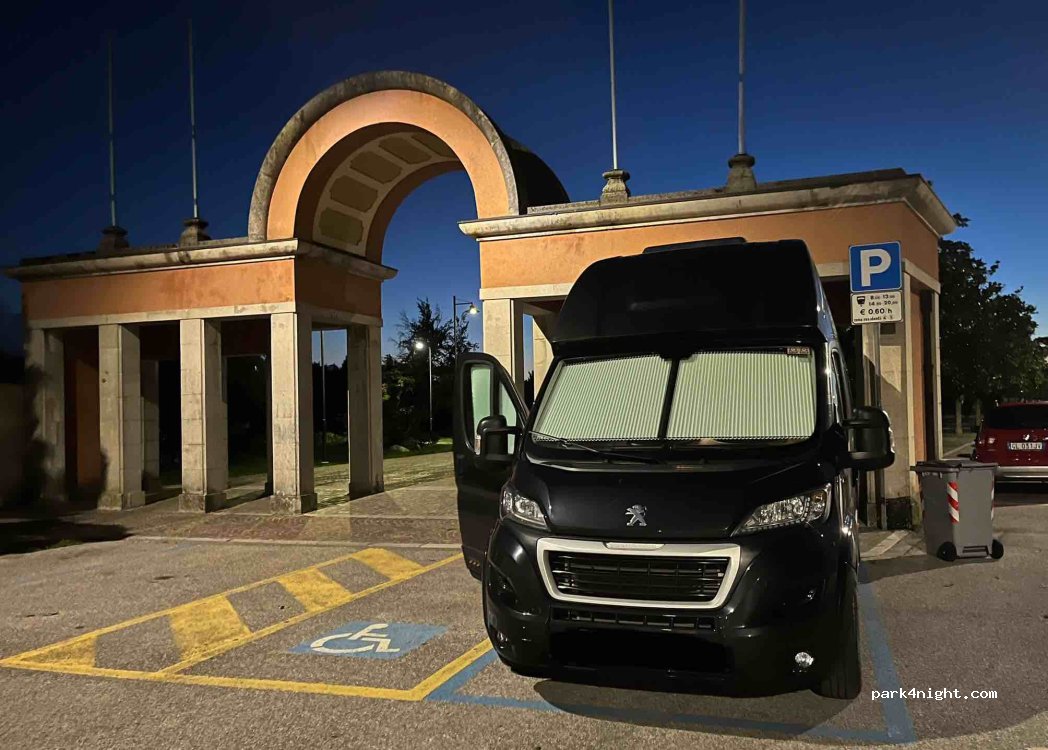Parkplatz am Park Moretti. Nicht weit vom Zentrum. Parkgebühr 60 Ct/Std.