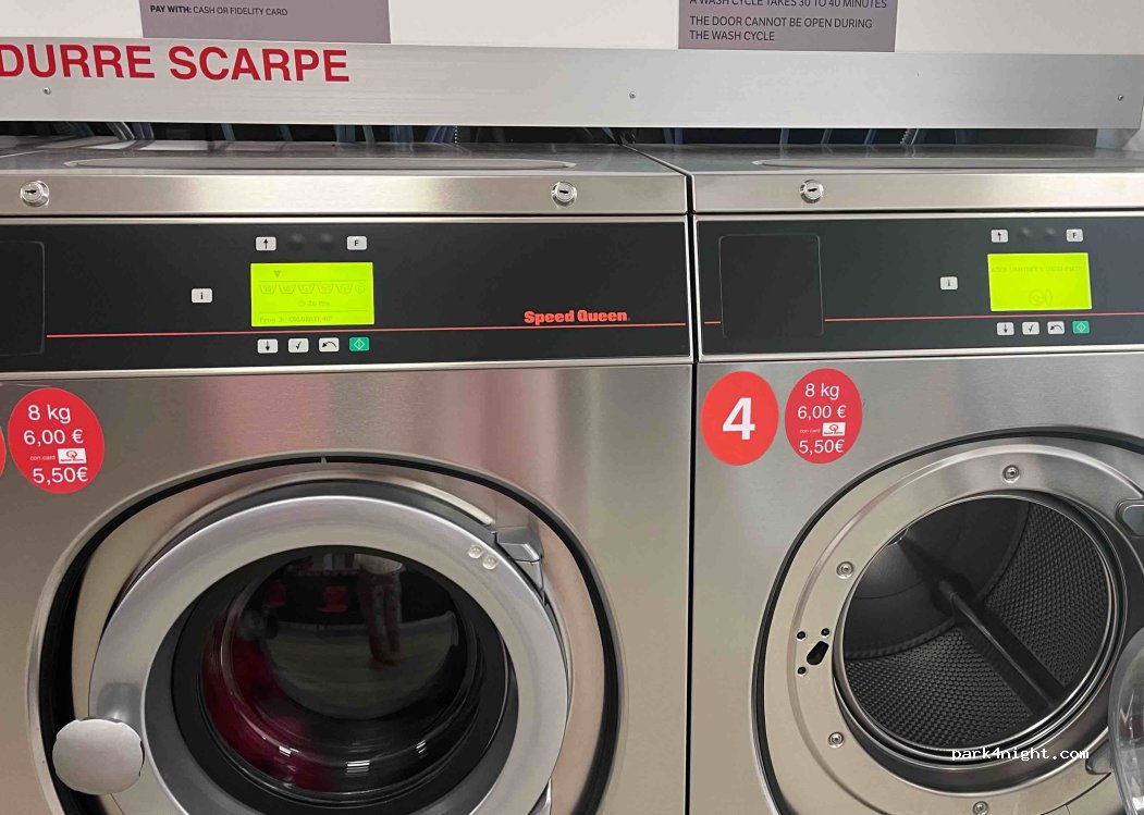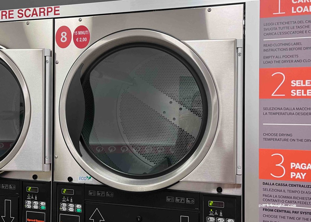 Lavanderia nuova, il gestore è presente, ma possibilità di ricaricare i telefoni o le batterie. Ci sono due prese. Si trova proprio di fronte a un piccolo bar. Ci sono alcuni posti sulla strada per parcheggiare il tuo veicolo.