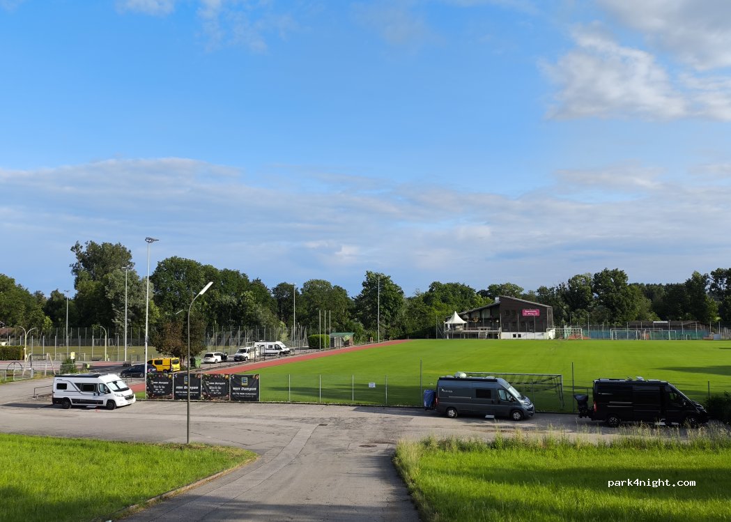 Ich schreibe als Anwohner, Camper und Vereinsmitglied :) Asphaltierte Stellplätze mit Spielplatz für die Kleinen. gut erreichbar und etwas abseits, aber fußläufig zu Hofladen, Pizzeria und Wirtshaus. Parkplatz ausreichend zur Verfügung. Keine offiziellen öffentlichen Toiletten. Wichtig: Turniere,Spiele und Training finden regelmäßig statt mit entsprechendem Lärm. schöner Blick auf die Berge.