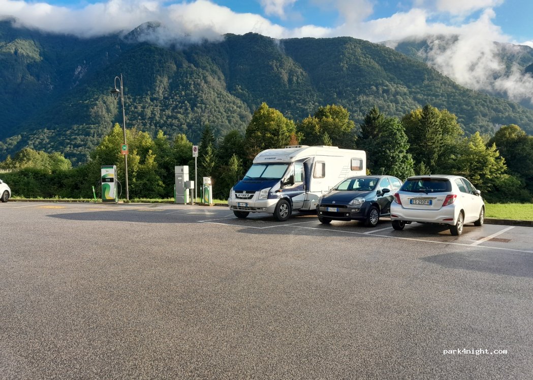 Parcheggio centrale, spazioso, asfaltato e gratuito. Peccato però che ci sia un solo posto dedicato al parcheggio dei camper. Non sappiamo se la sosta sia tollerata anche nelle altre piazzole, oggi ci siamo solo noi. Bella vista sul paese e sulle montagne, posto molto silenzioso.
