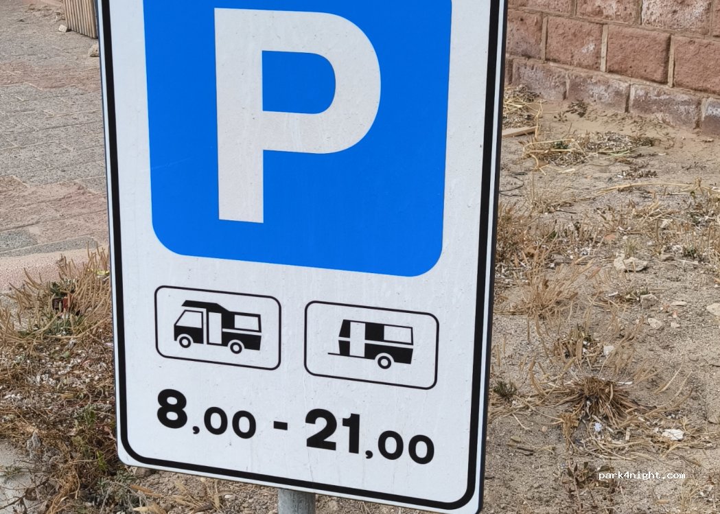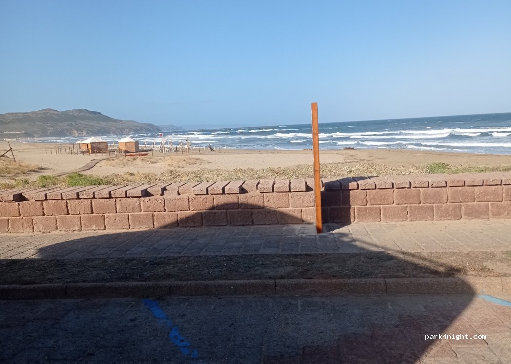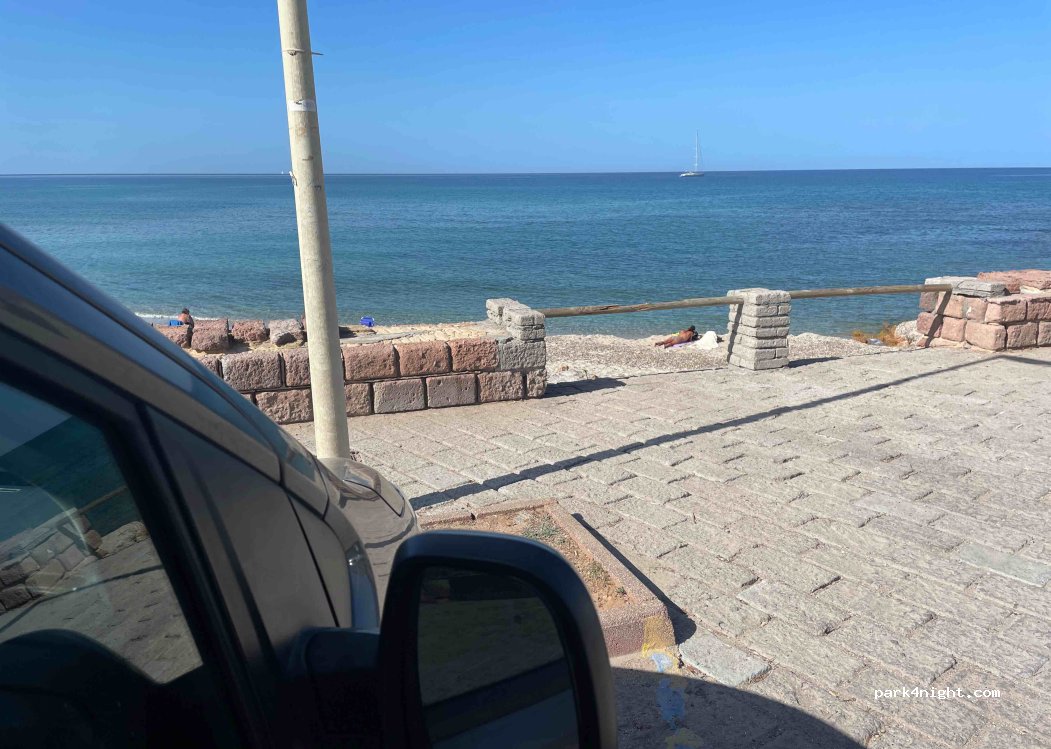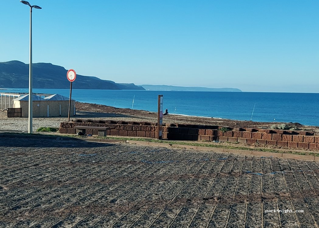 Parcheggio tranquillo proprio sulla spiaggia. Nelle vicinanze ci sono diversi bar sulla spiaggia. La notte è gratuita e poi durante il giorno dalle 8:30 alle 18:30.