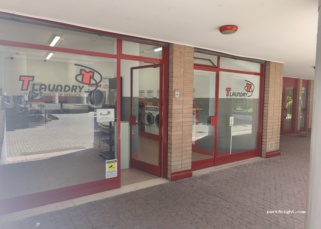 A laundry with a nearby parking lot where you can park the motorhome except on Thursdays when there is a market
