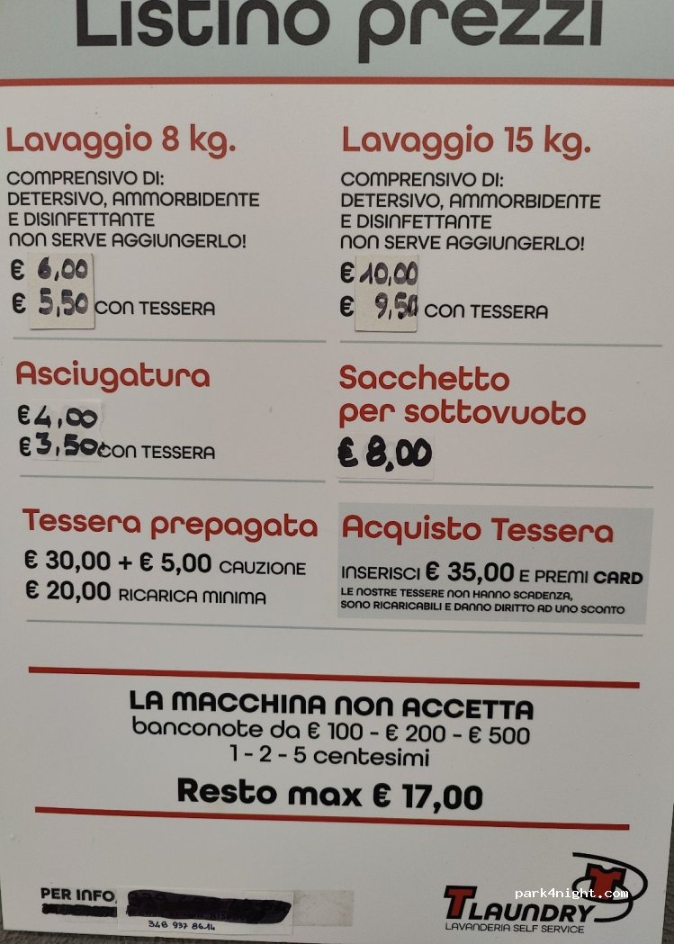 Una lavanderia con parcheggio vicino dove si può parcheggiare l'aria condizionata tranne il giovedì quando c'è il mercato