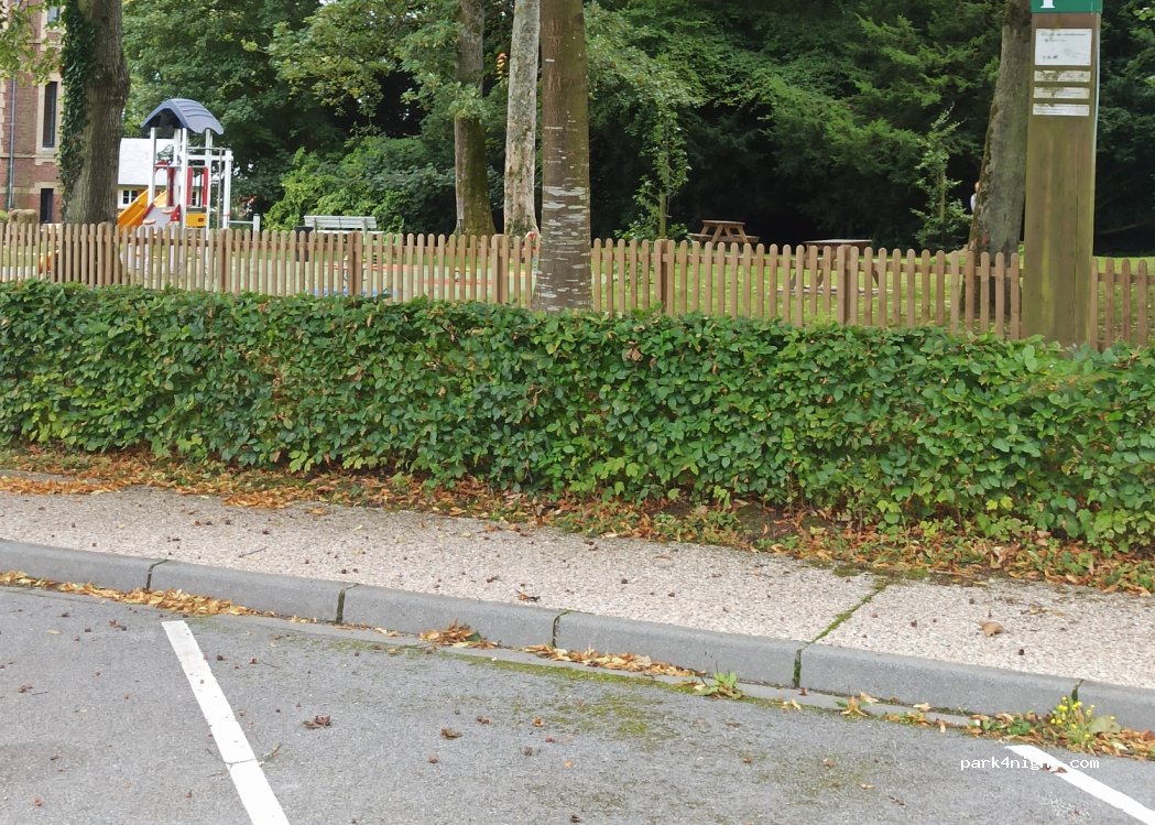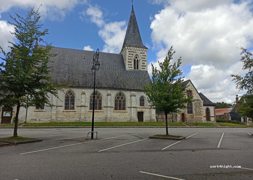 Parking à côté de l'église du village. Juste à côté, il y a une aire de jeux pour enfants avec des tables avec des bancs pour manger. L'environnement est très beau. Les nuitées ne sont pas interdites, mais le stationnement de plus de 24 heures l'est.