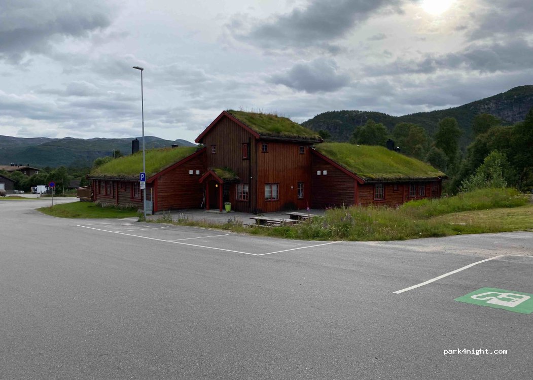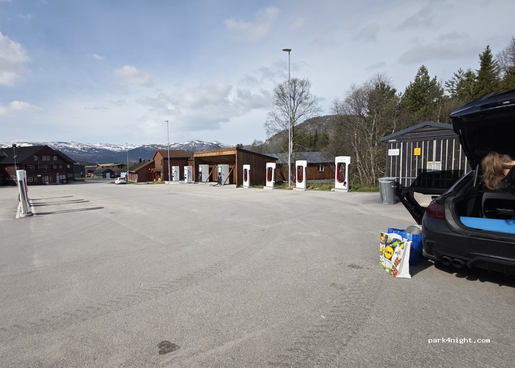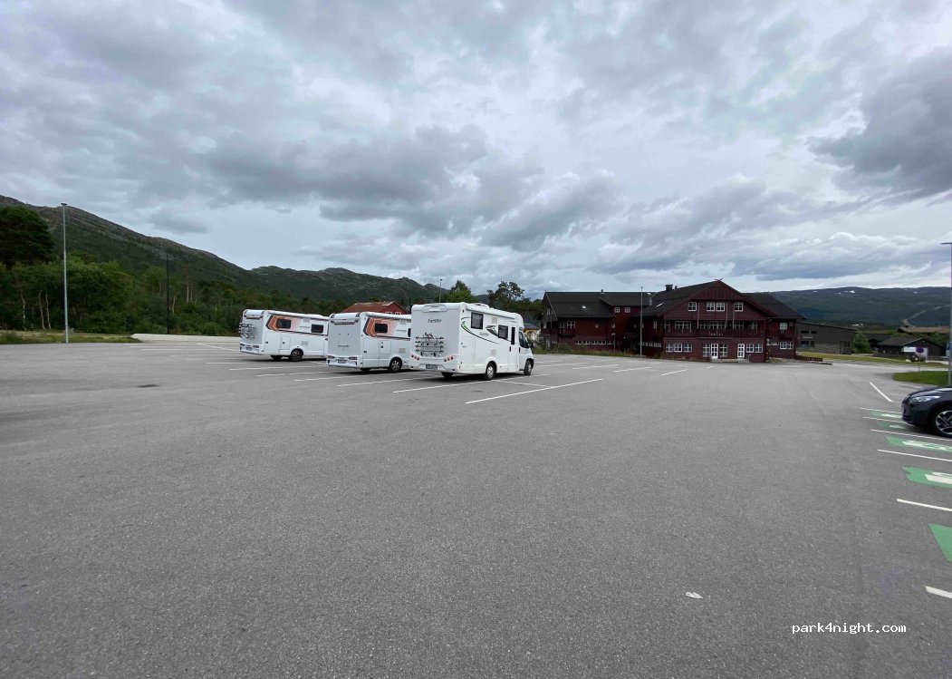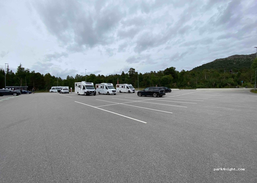 Großer asphaltierte Parkplatz an einer Straße, ohne alles, nachts ruhig. Geschäfte, Restaurants und die Touristeninformation zu Fuß erreichbar. Perfekt für eine Übernachtung.