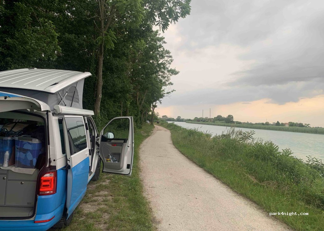 Quando siamo andati la piazzola era già occupata, ma poco più avanti c’è posto per altri 2 van.. posto molto tranquillo, perfetto per una notte! Confermo tante zanzare!