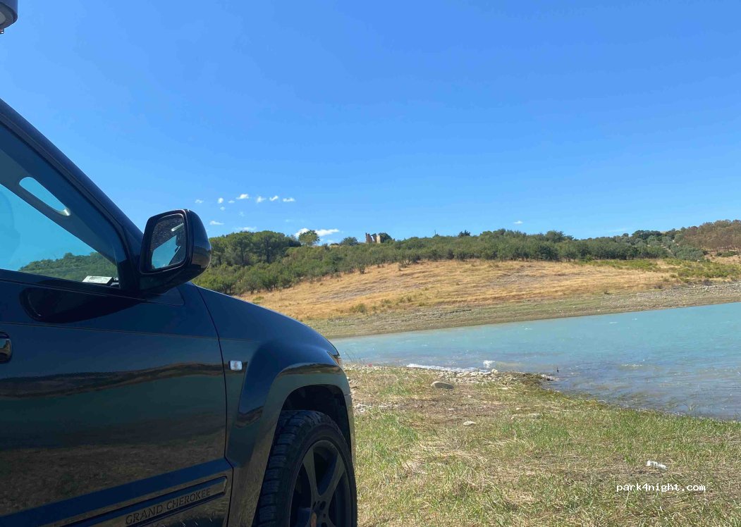 Pretty good spot. The lake is nice for cooling off. When I was here (beginning of summer) the water was pretty low, so there was a lot more room. The road runs down at a slight angle, so the lower the water the longer the road, and thus more room. Some people during the day, walkers, workmen, shepherds, almost no one during the night! There is a toilet in the shopping mall at Eurospin 5min drive.