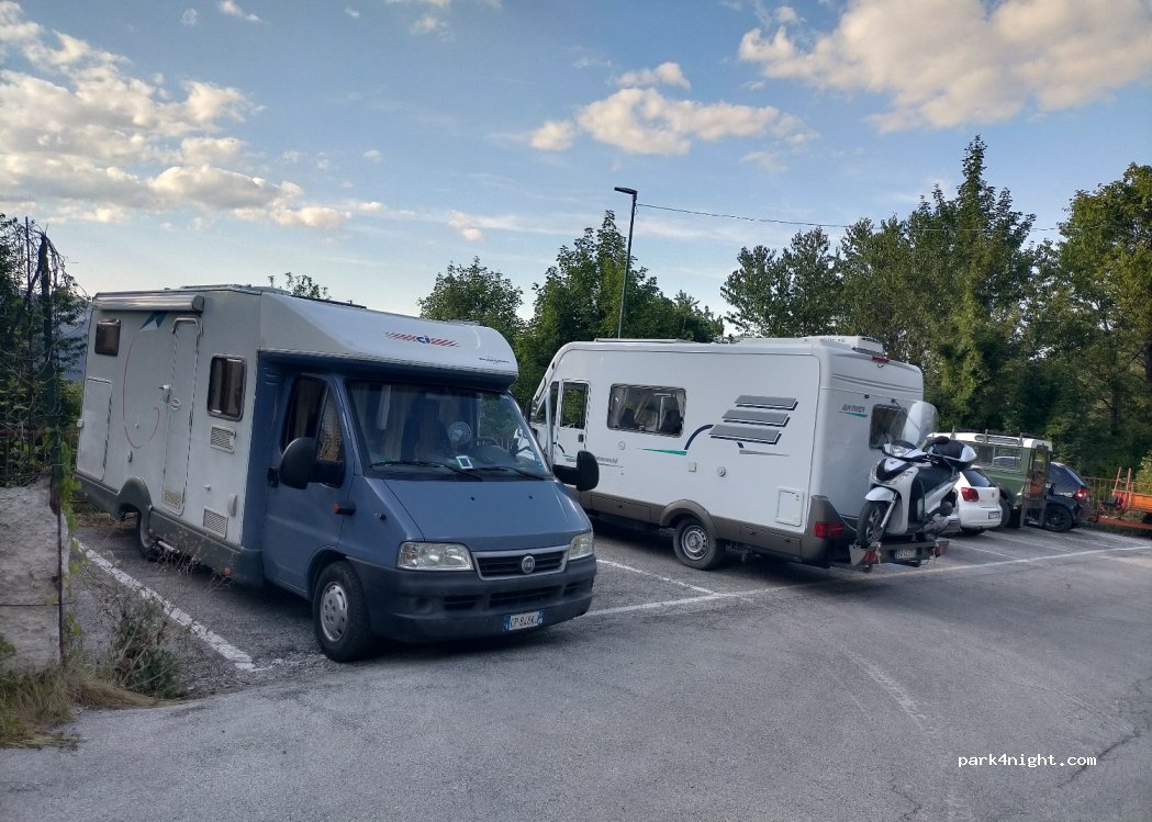 Parking de niveau, sans services, pratique pour visiter Pietracamela. Nous avons dormi sans problème.