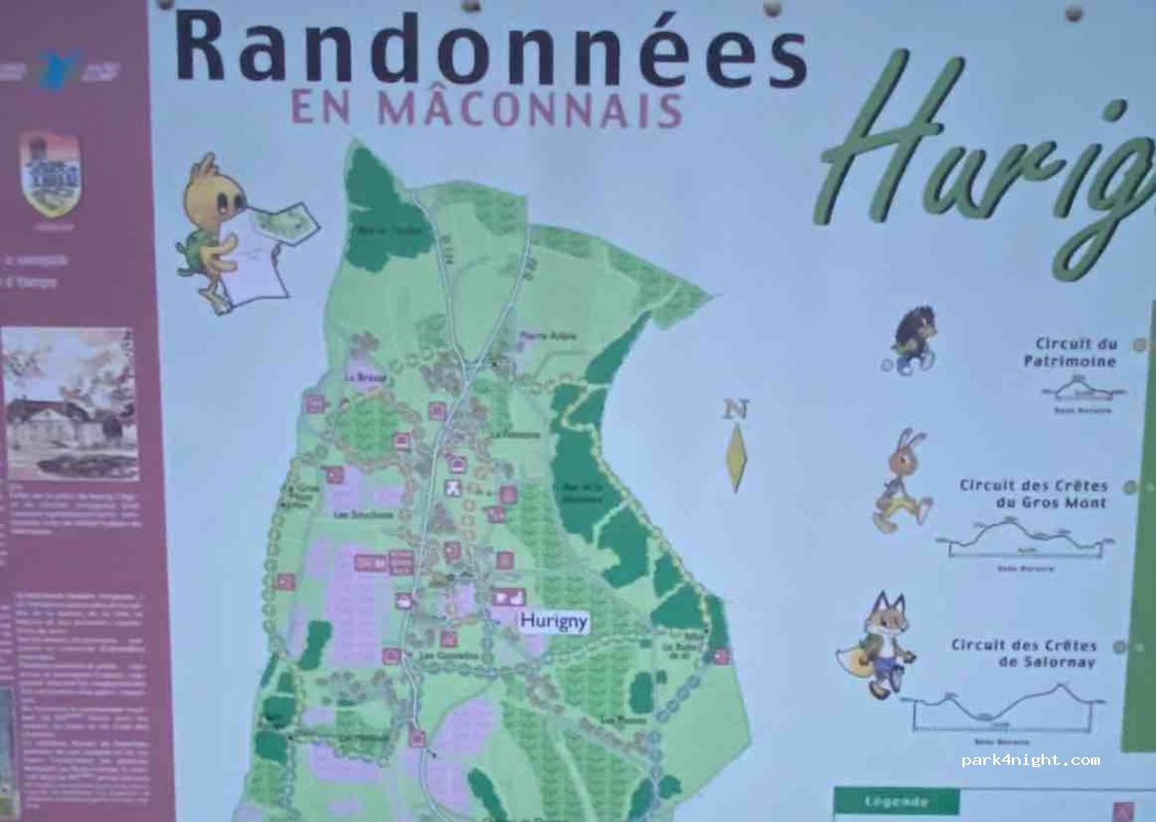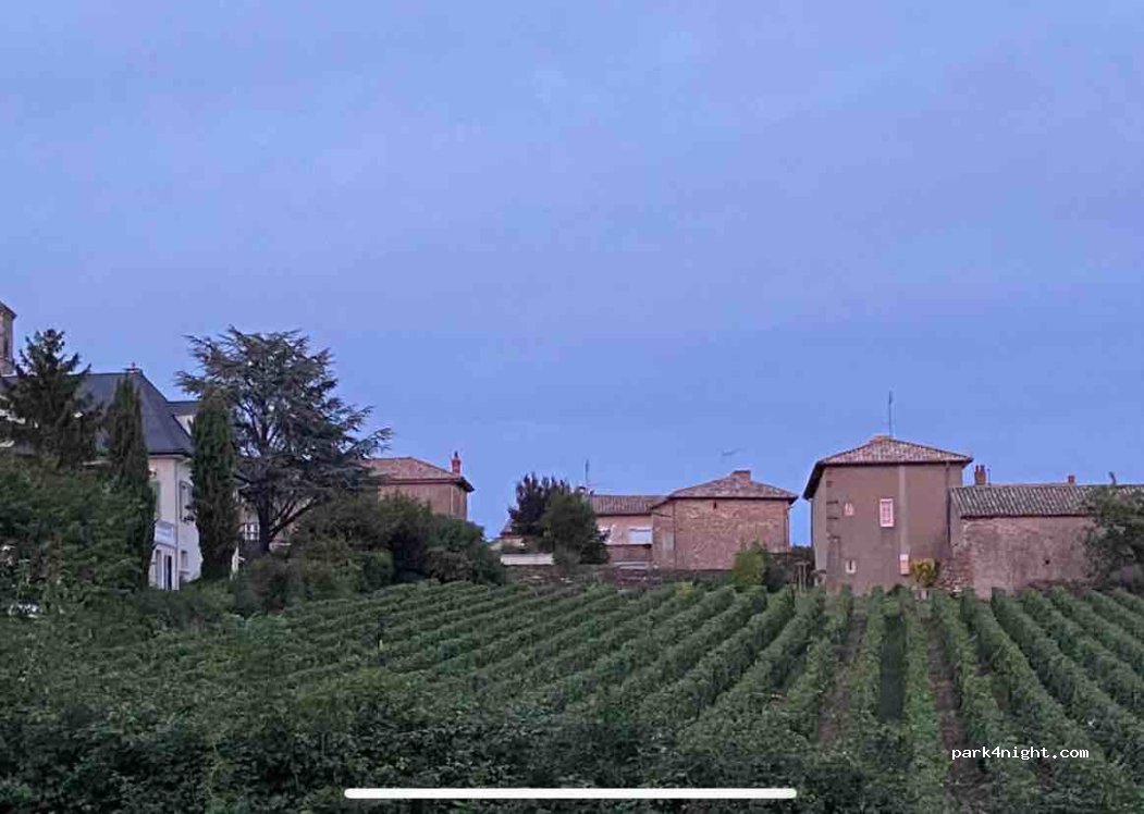 Hurigny, primary school and daycare car park, very quiet, with trash cans nearby and City stadium. Located next to the vineyard, the place is very quiet, perfect for a stopover for one night. Departure from the nearby Maconnais hike. Bakery and pharmacy 160 meters away.