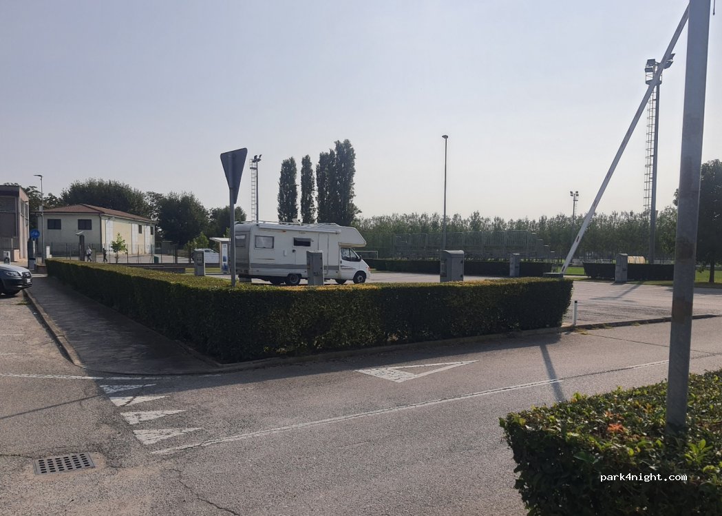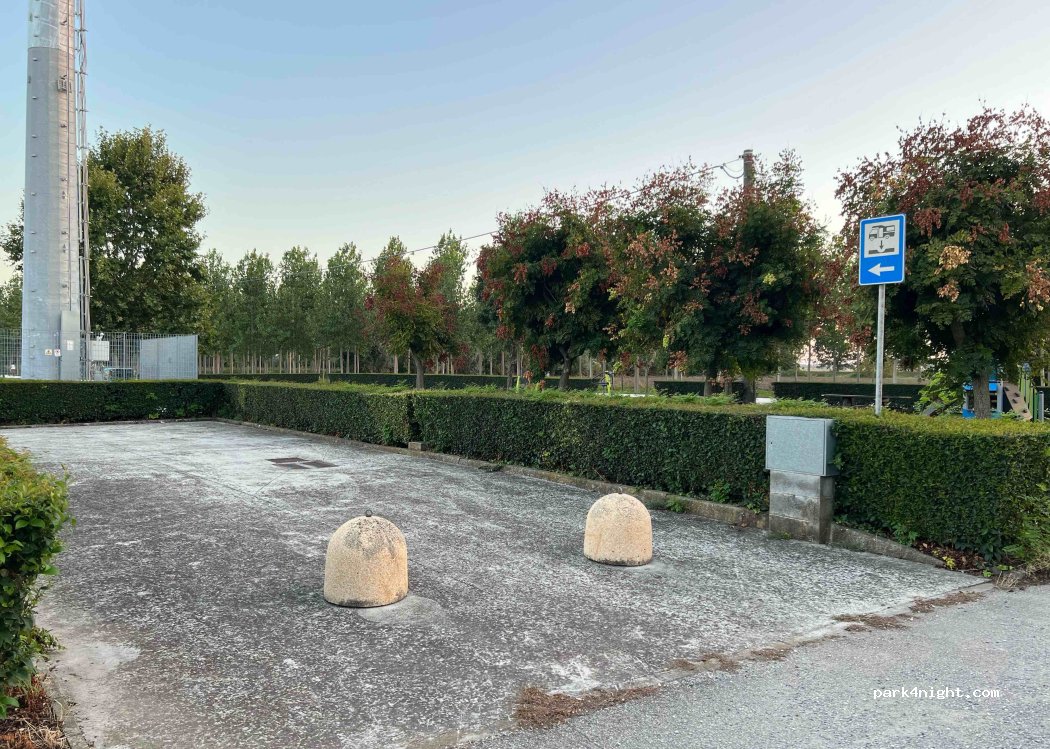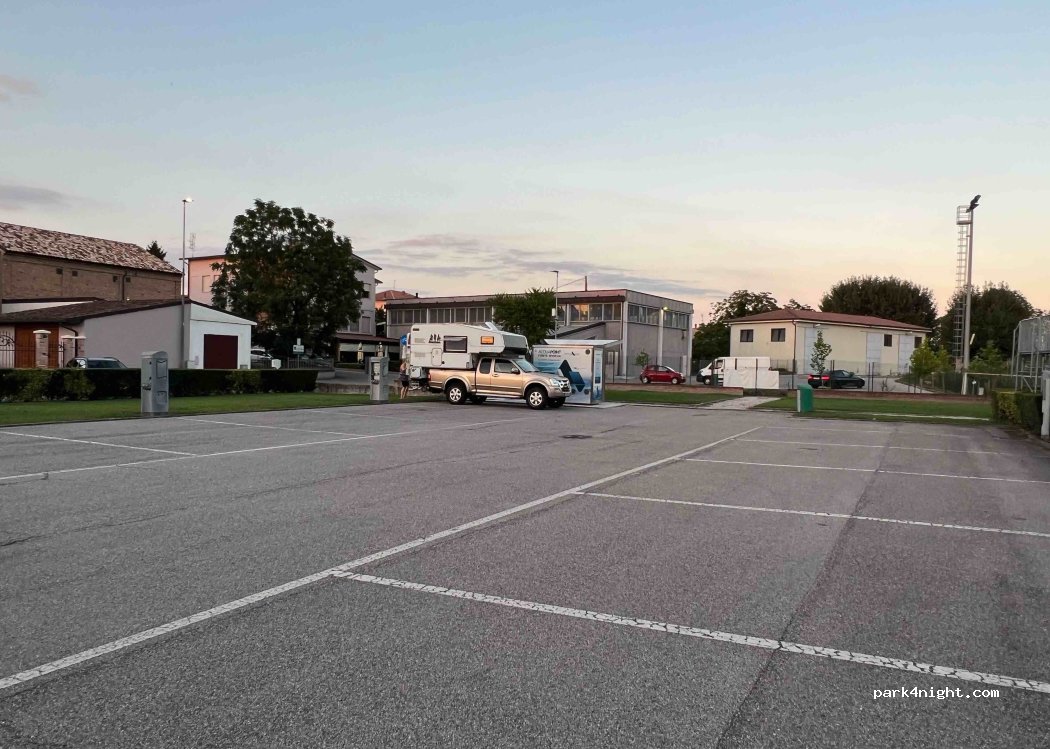 Schöne Gegend neben dem Sportplatz. Nicht touristisch. Bäckerei. Bar. Kostenloses kaltes Trinkwasser (still und sprudelnd!). Ruhig. Ideal für einen Zwischenstopp. In der landwirtschaftlich genutzten Gegend gibt es hübsche Dörfer mit Pizzerien und Bars.