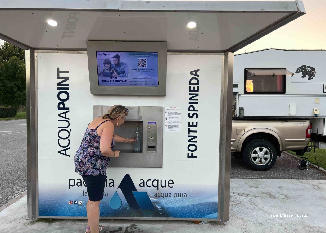 Ottimo, corrente, acqua, scarico,8 € Curato,con atrezzi ginnici e piazzola bambini.Piazzola su asfalto. Acqua da distributore, gratis, gasata e non. Il paese e piccolo con un solo bar, niente ristoranti, negozio alimentari, produzione propria, involtini, e carni varie, con vasetti sott'olio. Un posto molto tranquillo, a parte il rintocco delle campane, piacevole. CONSIGLIATO per relax.