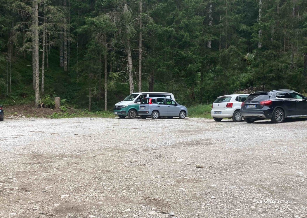Parcheggio tranquillo e silenzioso in mezzo alla natura, varie escursioni che partono da qui tipo al rifugio Ciareido e Bajon attraversando il ruscello. Bellissima zona pic-nic nelle vicinanze, con bidoni rifiuti.