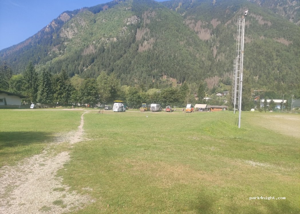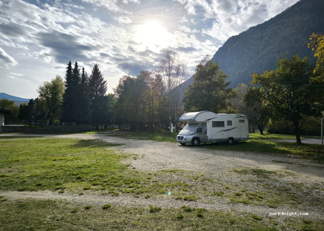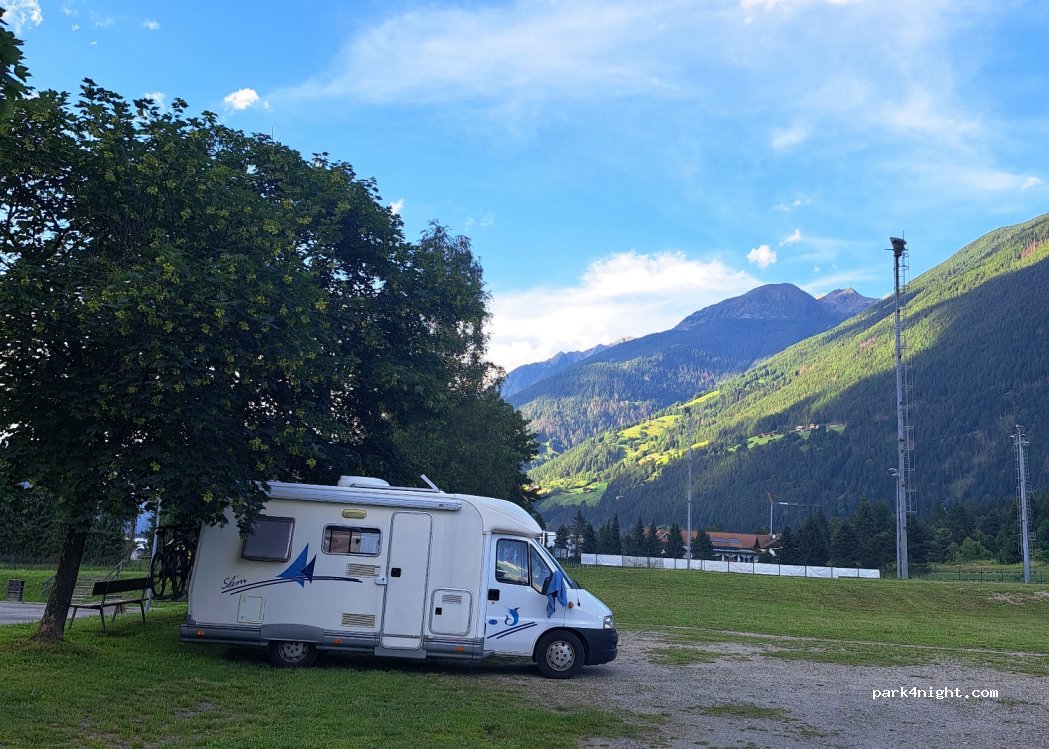 Excellent free grass parking for sports facilities, playground and man-made pond. Very close to the cycle path for Brunico. We spent a few hours there but it is also possible to stay overnight.