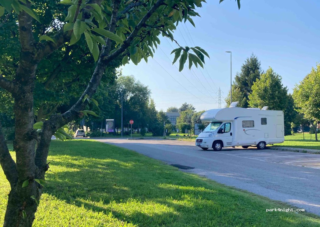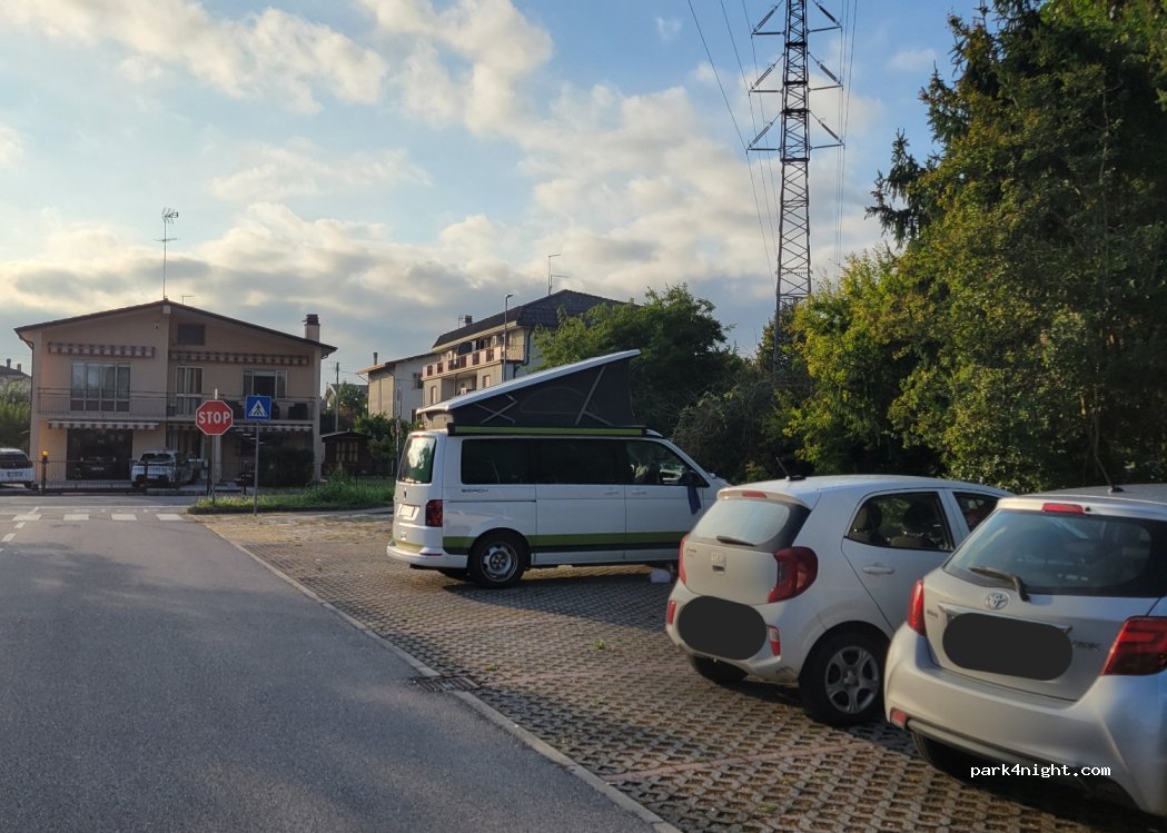 Einfacher Parkplatz um eine Nacht zu verbringen. Anwohner parken und spazieren vorbei. Wir haben da geschlafen um am nächsten Tag mit dem Zug nach Venedig zu fahren. Parkplatz am Bahnhof war uns zum Schlafen zu belebt.