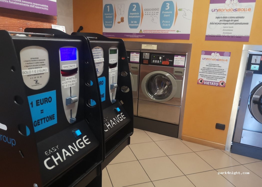 Ottima lavanderia self service con 2 lavatrici da 12 kg, 2 lavatrici da 16 kg e 3 asciugatrici. Hai bisogno di gettoni con un distributore automatico (con banconote o monete). Aperto fino alle 21.00