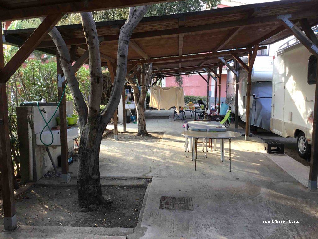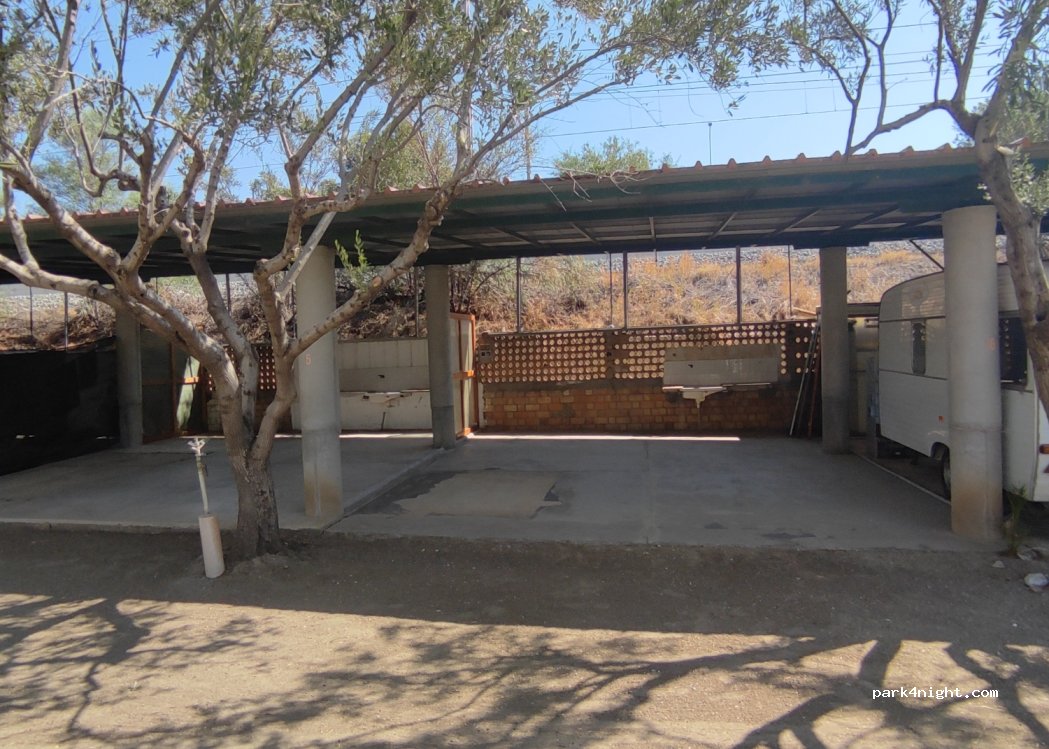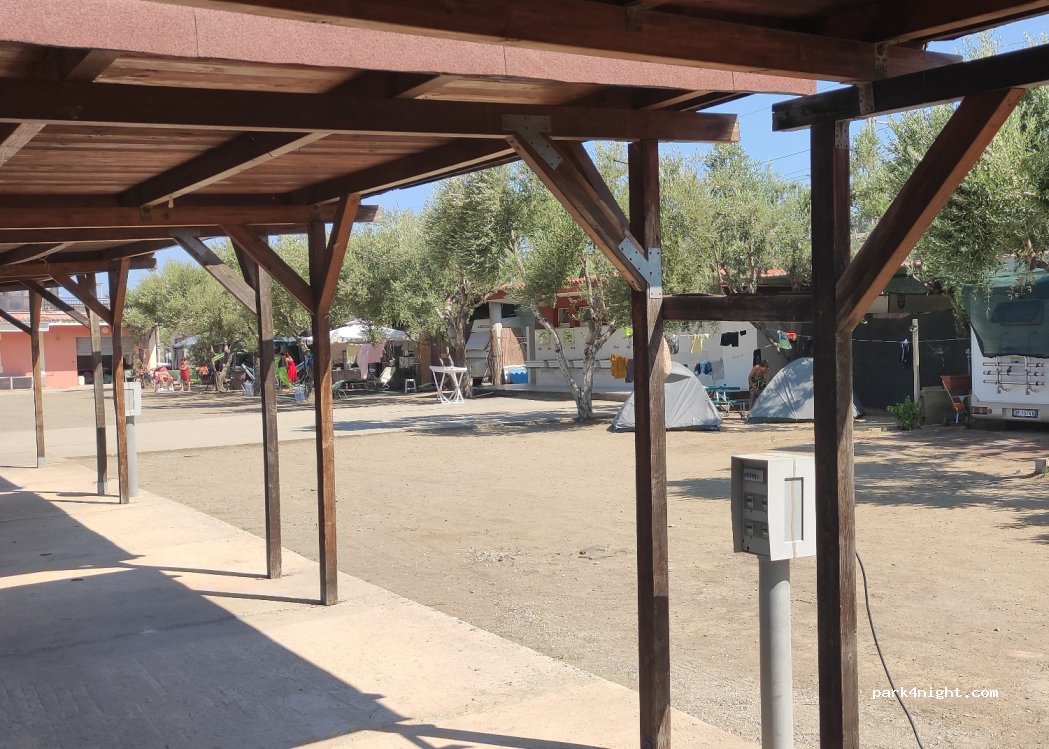 Non comprendo i giudizi così severi. Camper parcheggiati a ridosso di tettoie fisse in legno con fondo in cemento. Nessuna ombra. Ogni piazzola ha il suo lavabo per i piatti e 220v. Wc e docce datati ma funzionanti, puliti durante la mia visita. Piscina e bar (poco fornito). Stazione comoda per R. Calabria. Strada trafficata, passa qualche treno. Come sosta di un paio di giorni la consiglierei.