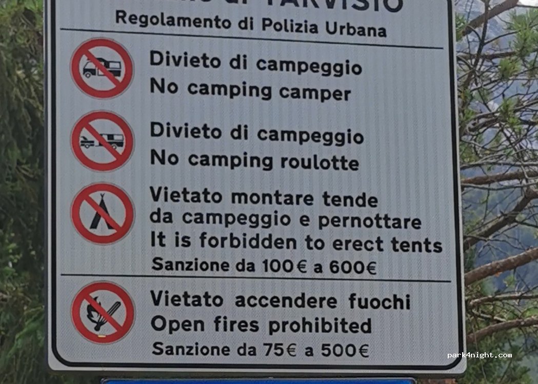 We were here today, there are new no stopping signs and no camping around. But €2/hour, €8/day. it's quite far from the water.
